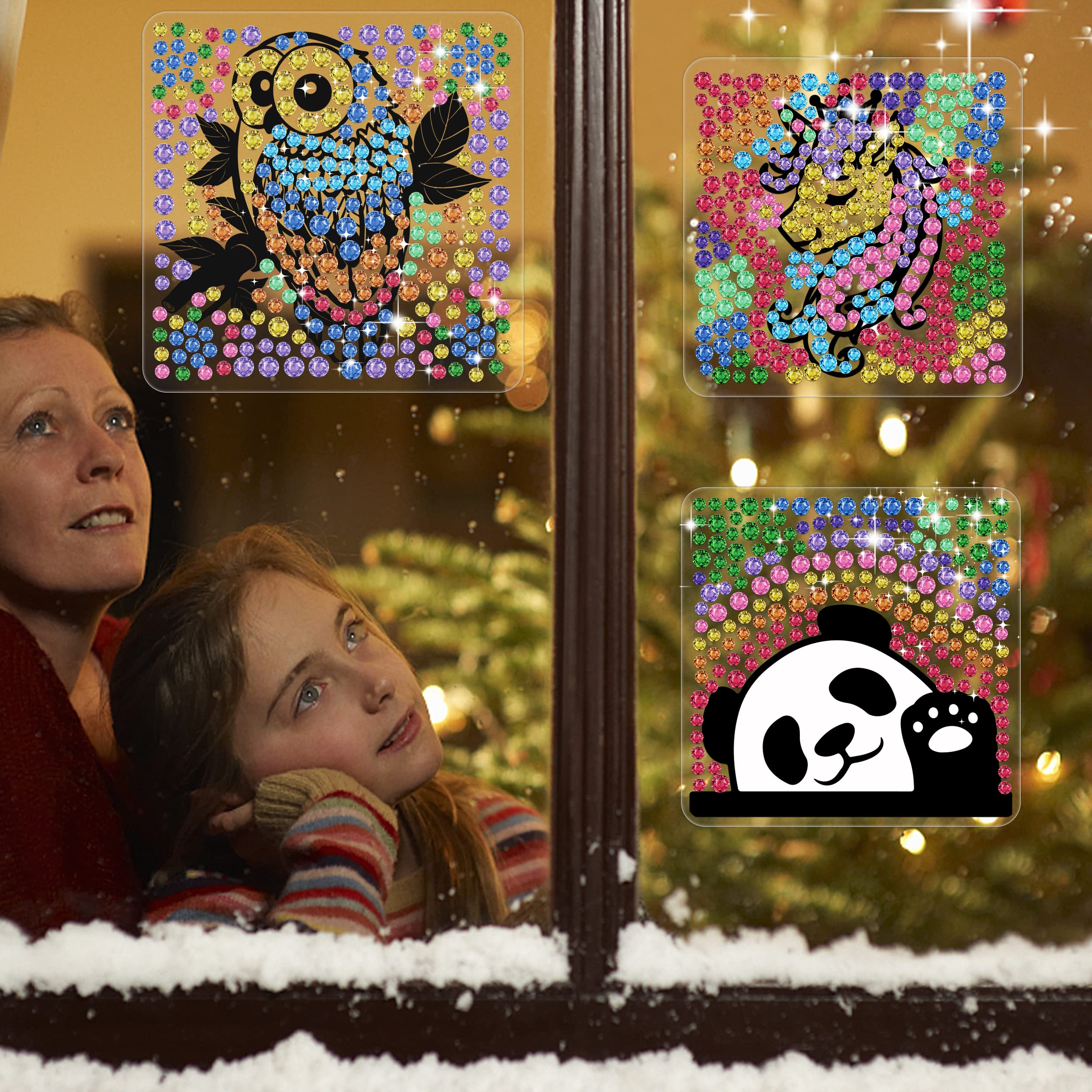 Suchst du ein kreatives Bastelset für dein Kind? Dieses Diamant Fensterkunst Set mit 4 goldenen Sonnenfängern ist perfekt! Enthalten sind über 2000 bunte Edelsteine in zwei Größen (0,8cm und 0,4cm), 4 verschiedene Motive (Blumen, Sonnenfische, Delfine, Vögel) und 28 doppelseitige Klebebänder die keine Spuren hinterlassen. Kinder ab 6 Jahren können die Edelsteine einfach auf die transparenten Folien kleben und die wunderschönen Sonnenfänger ans Fenster hängen. Das fördert Feinmotorik, Geduld und Kreativität. Perfekt für regnerische Tage, Kindergeburtstage oder als Geschenk zu Weihnachten. Einfach basteln, ans Fenster kleben und sich über die bunten Lichtreflexe freuen - die ganze Familie wird begeistert sein!