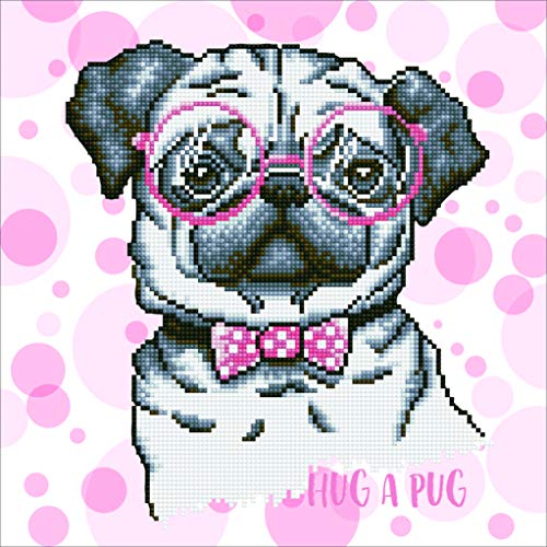 Entdecke die entspannende Welt des Diamant Paintings! Dieses süße Mops-Motiv in 30x40cm bringt Freude in dein Zuhause. Das 5D-DIAMANT-Set enthält alles, was du brauchst: Leinwand mit klebriger Oberfläche, bunte Diamanten, Stift, Kleber und Sortierschale. Die runden Diamanten mit 18 Facetten reflektieren das Licht wunderschön und sorgen für einen glamourösen Glanzeffekt. Einfach den Diamanten auf die entsprechende Symbolstelle drücken - schon entsteht nach und nach ein funkelndes Kunstwerk. Perfekt zur Entspannung nach einem stressigen Tag oder für quality time mit Kindern ab 3 Jahren. Das fertige Bild ist eine wunderschöne Deko für Wohnzimmer, Schlafzimmer oder Büro. Einfach anfangen und in die meditative Welt des Diamond Paintings eintauchen!