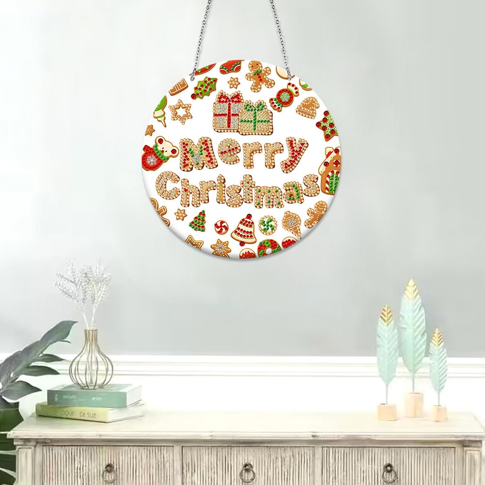 5D DIY Diamond Painting Weihnachtskranz - Beidseitiger Diamant Anhänger Mit Kette
