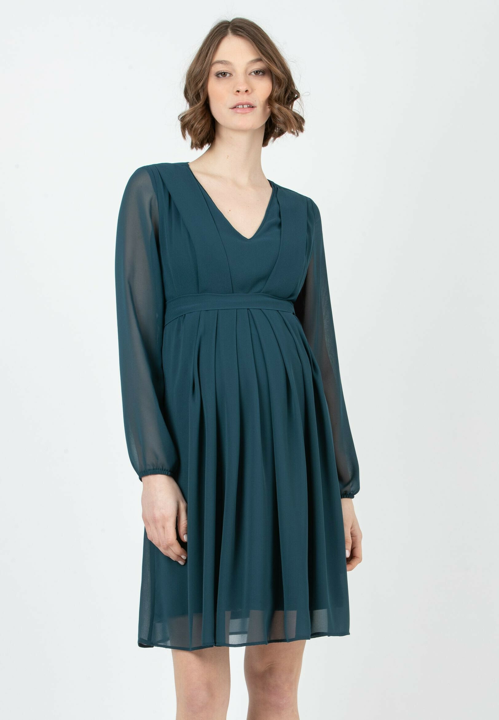Einfach traumhaft dieses Schwangerschaftskleid von ATTESA! Aus weichem Chiffon mit ¾-Ärmeln und hübschen Rüschen an Kragen und Manschetten. Empire-Taillenbund mit Raffung - bietet Platz für wachsende Babykugeln! Versteckter Reißverschluss vorne - praktisch zum Stillen nach der Geburt. V-Ausschnitt und flatternder Schnitt - super schmeichelhaft! Perfekt für besondere Anlässe, Feiern oder als Hochzeitskleid in der Schwangerschaft. Elegant und praktisch zugleich - von der Schwangerschaft bis zur Stillzeit nutzbar. Mach dich schön für jeden Anlass - fühl dich weiblich und comfortable zugleich! Ein Kleid das mitwächst und immer perfekt passt!