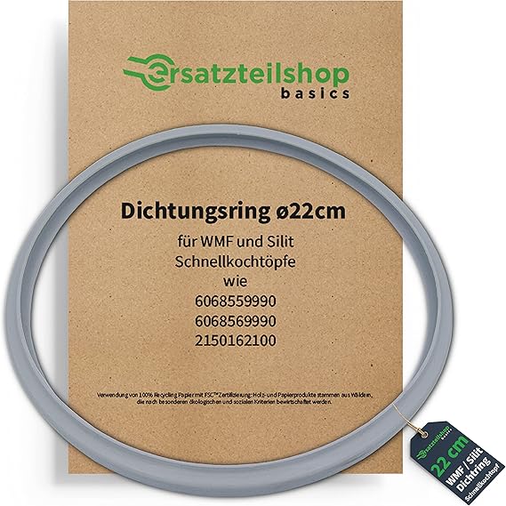 Achtung WMF und Silit Besitzer! Dieser 22cm Ersatz-Dichtungsring bringt deinen Schnellkochtopf wieder auf Vordermann. Aus hochwertigem, lebensmittelechtem Silikon gefertigt, ist er hitzebeständig bis 250°C und garantiert einen sicheren Verschluss. So entweicht kein Dampf und dein Kochtopf funktioniert wieder wie neu. Die exakte Passform sorgt dafür, dass alles dicht bleibt und die Druckkontrolle zuverlässig arbeitet - wichtig für deine Sicherheit in der Küche! Der Austausch ist super einfach: Alten Ring raus, neuen rein - kein Werkzeug nötig. Vor der ersten Verwendung einfach kurz in kochendem Wasser auskochen, dann ist er bereit für den Einsatz. Wir empfehlen, den Dichtungsring alle 2-3 Jahre zu wechseln, um stets perfekte Kochergebnisse zu garantieren. So verlängerst du die Lebensdauer deines Schnellkochtopfs erheblich. Achte beim Entlüften immer auf sicheren Abstand - heißer Dampf kann austreten! Mit dieser hochwertigen Silikon-Dichtung machst du nichts falsch. Sie ist geruchsneutral, ungiftig und formstabil. Also, gib deinem geliebten Schnellkochtopf eine zweite Chance und koch wieder sicher und effizient!