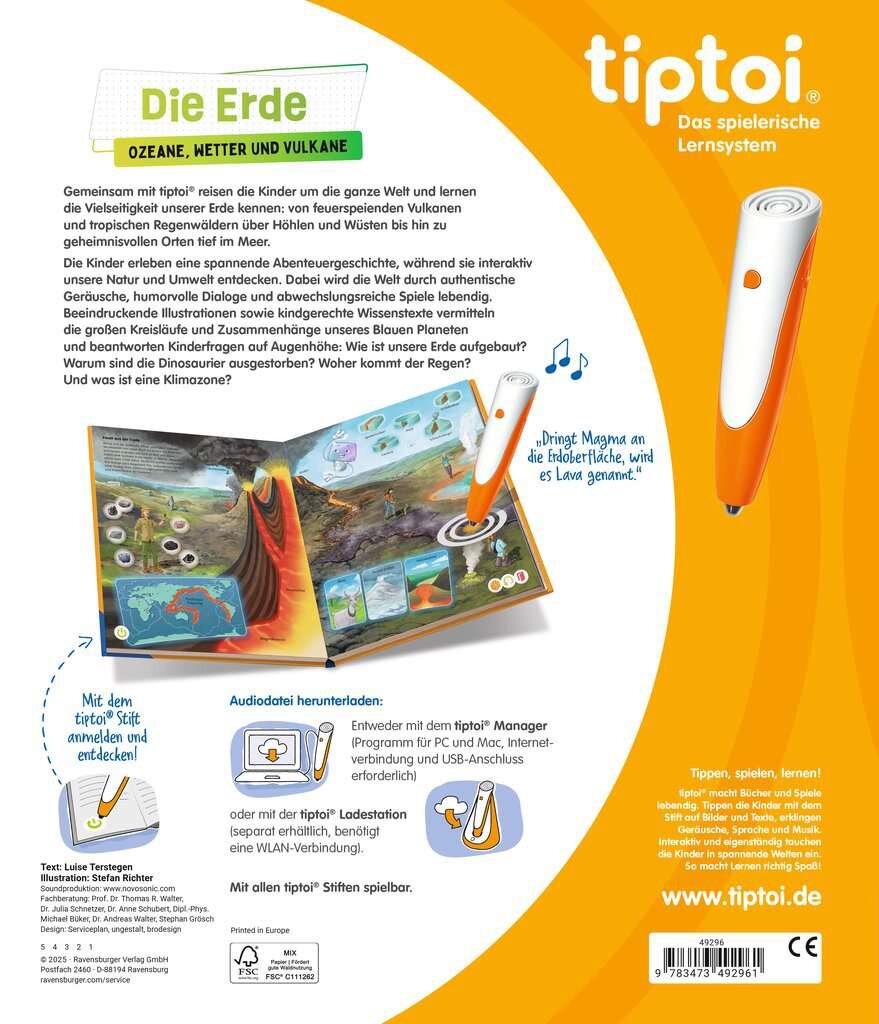 Entdecke die Wunder unseres Planeten! Mit dem tiptoi Buch 'Die Erde' von Ravensburger begeben sich Kinder ab 6 Jahren auf eine spannende Reise um die Welt. Wie entsteht ein Vulkan? Warum regnet es? Was lebt in den Ozeanen? All diese Fragen werden kindgerecht und interaktiv beantwortet. Einfach mit dem tiptoi-Stift (separat erhältlich) auf die Bilder tippen und schon erwachen die Illustrationen zum Leben mit Geräuschen, Erklärungen und Spielen. Die detailreichen Zeichnungen und fünf sympathische Begleitfiguren machen komplexe Themen wie Klimazonen, Wetterphänomene und Erdaufbau begreifbar. Zahlreiche Lernspiele vertiefen das Wissen und machen riesigen Spaß. Perfekt als Geschenk zum Geburtstag, zu Weihnachten oder einfach so - für neugierige Jungen und Mädchen, die mehr über unsere Welt erfahren wollen. Fördert spielerisch das Naturverständnis und weckt die Begeisterung für Geografie und Wissenschaft. Ein Buch, das immer wieder neue Überraschungen bereithält!