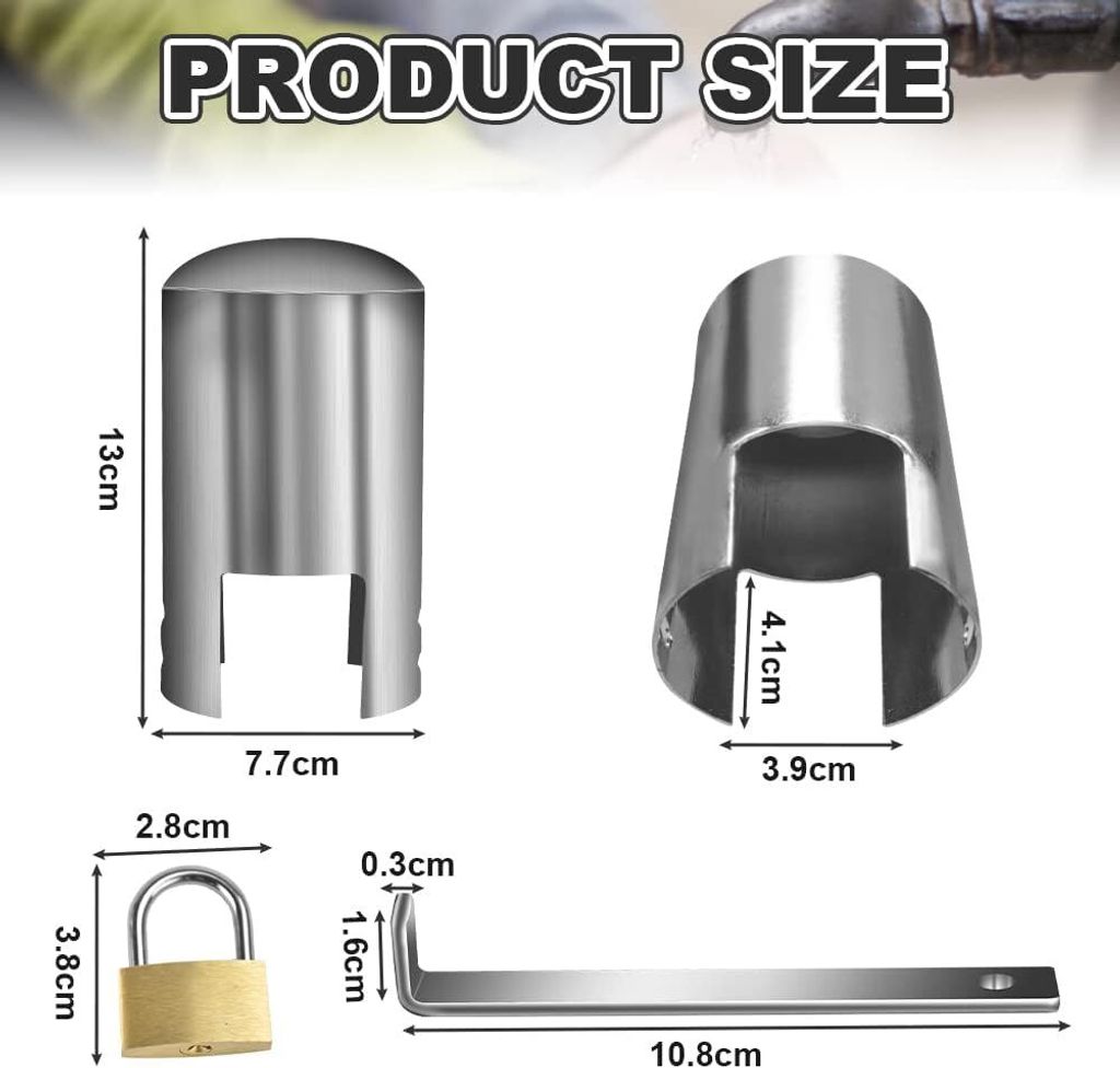 Stop! 🛑 Dein Wasserhahn ist sicher mit diesem praktischen Wasserhahnschloss! Perfekt für alle, die ihren Außenwasserhahn vor unbefugter Nutzung schützen wollen.\n\nDas blaue Metallgehäuse (12,5x6 cm) passt auf die meisten Wasserhähne und schützt zuverlässig vor Vandalismus und Wasserdiebstahl. Einfach über den Hahn stülpen, mit dem hochwertigen Messingschloss verriegeln - und schon ist dein Wasserhahn sicher!\n\nBesonders praktisch: Keine Werkzeuge nötig! Die Installation dauert nur Sekunden. Das verzinkte Eisen ist rostfrei, UV-beständig und hält auch bei schlechtem Wetter stand.\n\nIdeal für: Gartenwasserhähne, Ferienhäuser, Mietobjekte, Schulen, Parks oder öffentliche Gebäude. Verhindert nicht nur Wasserdiebstahl, sondern schützt auch deine Gartenschläuche vor unbefugter Nutzung.\n\nIm Lieferumfang sind enthalten: 1x Abdeckung, 1x Schloss und 2x Schlüssel (einen als Ersatz sicher verwahren!). Mit 250g Gewicht ist sie robust aber nicht zu schwer.\n\nOb du verreist oder einfach nur auf Nummer sicher gehen willst - mit diesem Schloss schützt du deine Wasserhähne effektiv. Spart Wasser, Nerven und Geld! 💧🔒\n\nEinfach. Sicher. Praktisch.