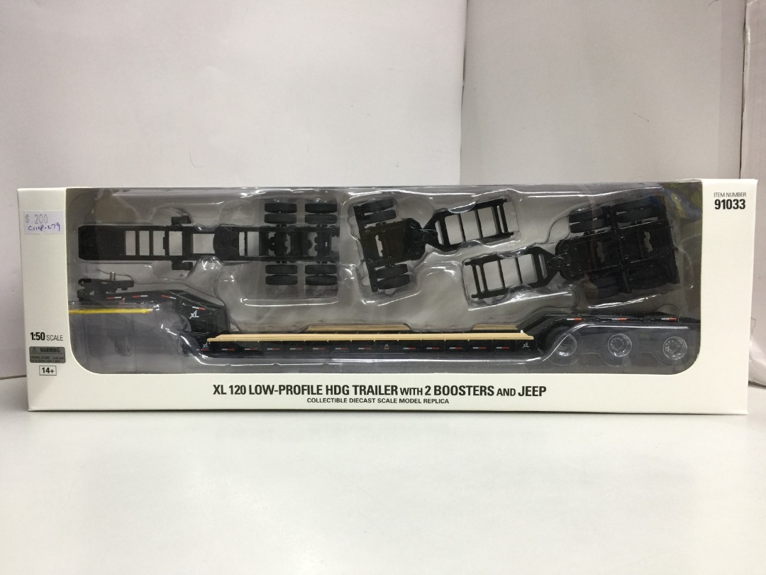 Für echte Modellbau-Fans! Dieser XL 120 Low-Profile HDG Trailer mit Jeep im Maßstab 1:50 ist ein absolutes Highlight. Super detailgetreu und in Sammlerqualität. \\n\\nJedes Detail ist perfekt nachgebildet - von der Lackierung bis zu den beweglichen Teilen. Kommt in einer hochwertigen Display-Box, perfekt zur Aufbewahrung oder als Geschenk. \\n\\nTechnische Daten:\\n• Maßstab: 1:50\\n• Größe: ca. 27 x 7 x 7,5 cm\\n• Farbe: Schwarz\\n• Mit vielen Anbauteilen\\n• Ab 14 Jahren\\n\\nBesonderheiten:\\n• Offiziell lizenziert\\n• Metall-Nachbildung\\n• Realistisches Aussehen\\n• Hochwertige Verarbeitung\\n\\nAchtung: Nicht als Spielzeug geeignet! Ein Muss für jeden Sammler. \\n\\nHol dir dieses beeindruckende Modell für deine Sammlung oder verschenke es an einen Modellbau-Begeisterten! Einfach bestellen und staunen, wie detailreich es ist.