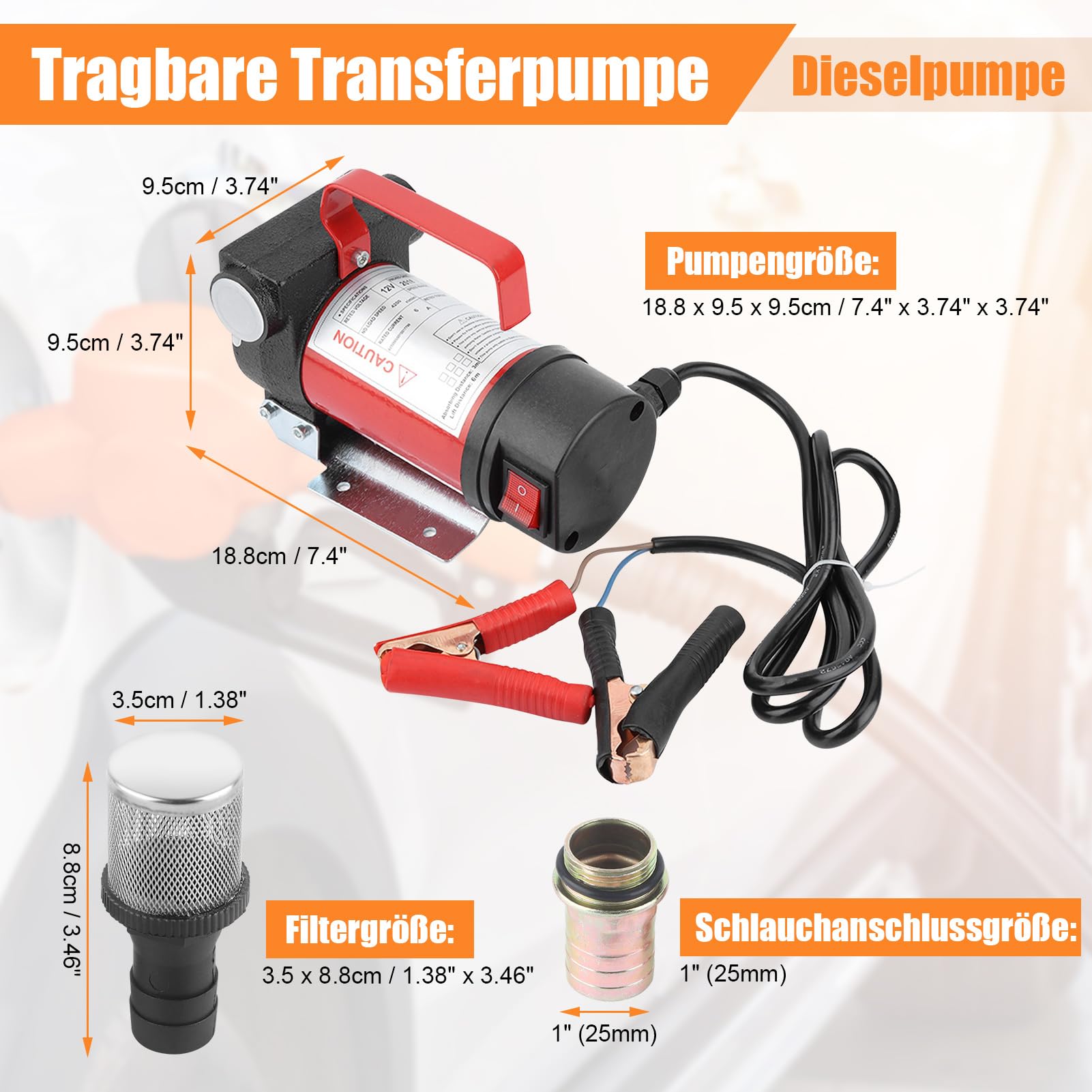 12V Dieselpumpe 40L/min - Selbstansaugend Für Kanister & Tanks