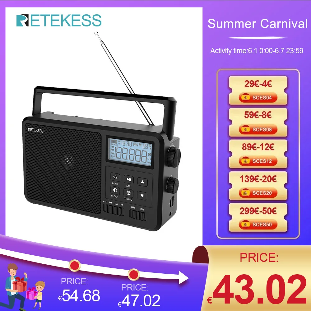 • Retekess V115P Digital Radio - AM/FM/SW/LW/WB, 1800mAh Akku, TF/AUX - Mit Sleep Timer & Aufnahme