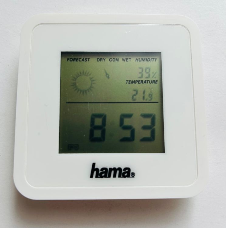 Hey, dieses Hama Thermometer-Hygrometer ist echt praktisch um das Raumklima immer im Blick zu haben! Es zeigt dir nicht nur die aktuelle Temperatur von -10°C bis +50°C an, sondern auch die Luftfeuchtigkeit von 20% bis 95%. Besonders cool: Der Komfort-Index sagt dir ob die Luft 'zu trocken', 'optimal' oder 'zu feucht' ist - super fürs Wohlbefinden! Das Gerät speichert die Höchst- und Tiefstwerte der letzten 24 Stunden und zeigt sogar Trends an. Du kannst es zwischen Celsius und Fahrenheit umstellen, je nach Vorliebe. Es ist super vielseitig - entweder mit Standfuß hinstellen oder an der Wand aufhängen. Perfekt fürs Schlafzimmer, Kinderzimmer, Büro, Wintergarten oder sogar Gewächshaus. Und das Beste: Das Gehäuse besteht zu 10% aus Weizenstroh und 90% aus Bio-Kunststoff - also richtig nachhaltig! Im Lieferumfang sind schon 2 AAA Batterien enthalten, also kannst du es sofort nutzen. Mit den Maßen 8,5x1,8x9,5 cm ist es kompakt und passt überall hin. Einfach einstellen und schon weißt du immer Bescheid über dein Raumklima!
