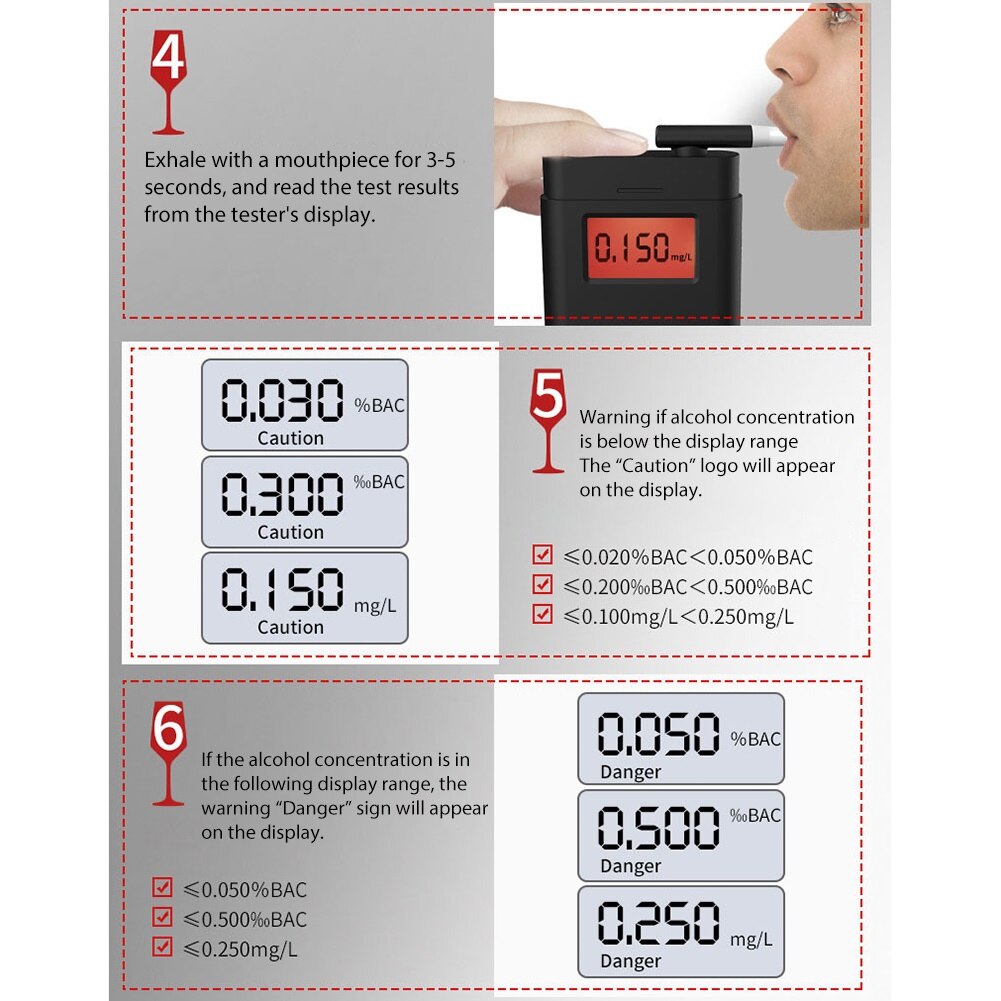 Sicherheit geht vor! Dieser digitale Alkoholtester von Sonew liefert in Sekunden präzise Ergebnisse - mit der gleichen Technologie, die auch bei Polizei und Kliniken eingesetzt wird. Einfach einschalten, 10 Sekunden Aufwärmzeit abwarten und in das Messgerät pusten. Schon nach 5 Sekunden zeigt das gut lesbare LCD-Display mit Hintergrundbeleuchtung Ihren Promillewert an (0.000%-0.199% BAC). Bei Überschreitung des Grenzwerts warnt ein akustischer Alarm. Kompakt und leicht passt das Gerät in jede Tasche. Mit Auto-Power-Off für längere Batterielebensdauer (2x AAA benötigt). Wichtig: Testen Sie erst 20 Minuten nach dem letzten Getränk für genaue Ergebnisse. Ein unverzichtbarer Begleiter für verantwortungsbewusste Autofahrer - ob nach der Feier, dem Restaurantbesuch oder der Betriebsfeier. Einfach, zuverlässig und lebenswichtig!