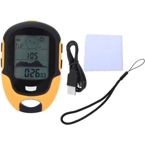 Der perfekte Begleiter für alle Outdoor-Abenteuer! Dieser digitale Höhenmesser zeigt dir nicht nur die Höhe an, sondern auch Richtung, Temperatur, Uhrzeit und Wettervorhersage. Mit super heller Hintergrundbeleuchtung - perfekt für nächtliche Touren. Aus robustem ABS-Material, hält auch mal was aus. Praktischer Karabinerhaken zum Anklipsen am Rucksack. Einfache Bedienung mit nur wenigen Tasten. Läuft mit CR2032 Batterie (nicht im Lieferumfang). Ob Bergsteigen, Wandern oder Camping - damit bist du immer bestens informiert!