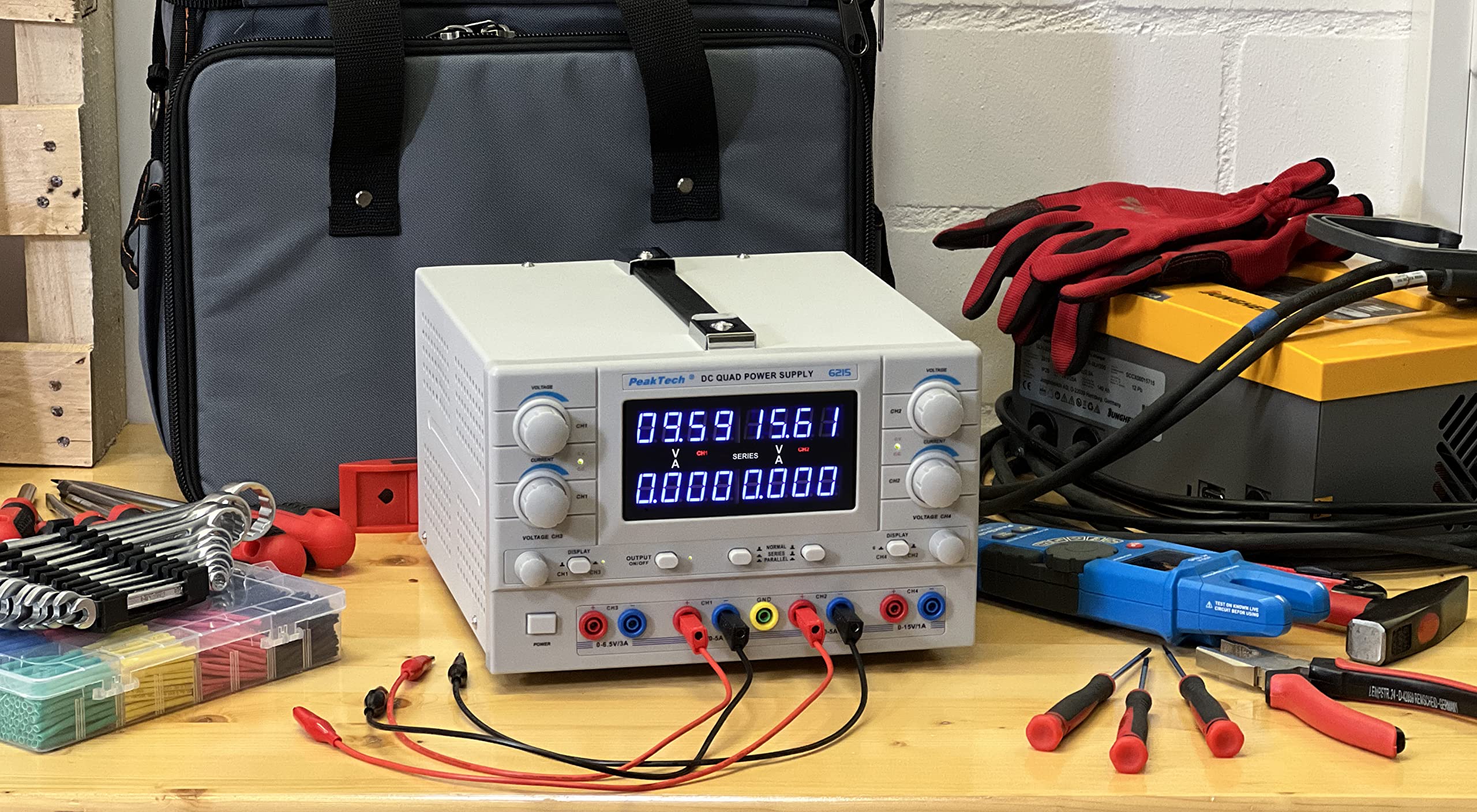 Wow, dieses PeakTech Labornetzteil ist ja mal richtig professionell! Mit 4 verschiedenen Ausgängen bist du für alle Experimente gerüstet: 2x 0-30V/0-5A, plus 6,5V/3A und 15V/1A fest. Die blaue Digitalanzeige zeigt alles super genau an. Aus Metall gemacht mit Tragegriff - das hält was aus! Innenliegender Lüfter und Kühlkörper sorgen dafür dass nichts überhitzt. Überlast- und Kurzschlussschutz sind auch dabei - also alles safe. Perfekt für Elektronik-Bastler, Hobby-Elektriker oder fürs Labor. Ob du Schaltungen testen, Akkus laden oder Motoren antreiben willst - mit diesem Netzteil geht alles. Einfach anschließen und loslegen!