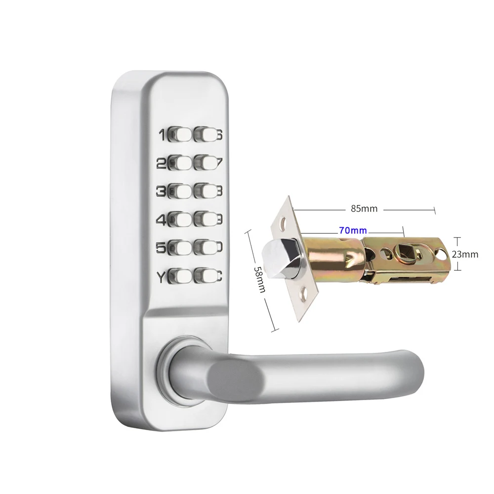 Schlüssel vergessen? Mit diesem mechanischen digitalen Türschloss gehört das der Vergangenheit an! Einfach dein 3-4-stelliges Passwort eingeben und schon geht die Tür auf - ganz ohne Strom oder Batterien. Aus hochwertiger Zinklegierung gefertigt, ist es nicht nur wasserdicht, sondern auch super robust gegen Rost. Mit den Maßen 107x43x40mm und Achsabstand 60mm passt es perfekt auf die meisten Türen. Für Türstärken von 30-65mm geeignet - ob Verbundtüren, Holztüren oder Sicherheitstüren. Der Linergröße von 25x56mm sorgt für sicheren Halt. Im Lieferumfang ist alles dabei: Schloss-Set, Schraubtasche und englische Anleitung. Einfach montieren und schon genießt du den Komfort des schlüssellosen Zugangs. Perfekt für Villen, Büros, Hotels oder einfach deine Wohnungstür. Nie wieder Schlüssel suchen oder verlieren - wie praktisch ist das denn? Einfach installieren und sich über die neue Freiheit freuen!