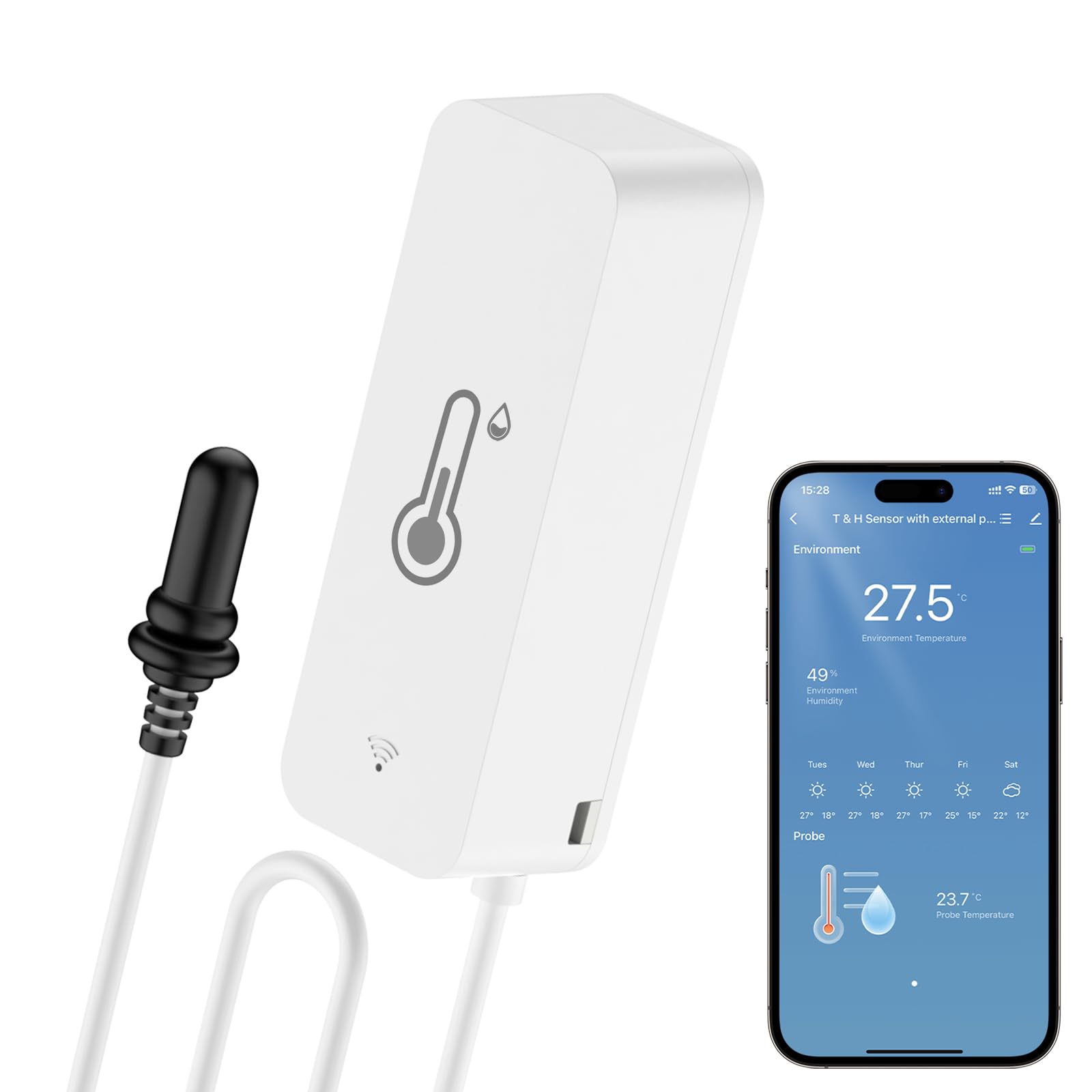 Mann, diese dijiusidy WLAN Uhr ist genau das Richtige für alle die immer im Blick haben wollen wie's zu Hause aussieht! Die digitale Uhr zeigt nicht nur sekundengenau die Uhrzeit und das Datum an, sondern überwacht auch permanent Temperatur und Luftfeuchtigkeit in deinen Räumen.\n\nDas Besondere: Sie connectet sich per WLAN mit der Tuya App! Das heißt du kannst von unterwegs checken wie warm oder kalt es zu Hause ist - super praktisch wenn du im Urlaub bist und nach deinen Pflanzen oder Tieren schauen willst.\n\nDie LED-Anzeige ist richtig klar lesbar mit 120° Betrachtungswinkel und verstellbarer Helligkeit. Du kannst sogar Alarmgrenzen einstellen - wenn es zu kalt oder zu warm wird, kriegst du sofort eine Push-Nachricht aufs Handy.\n\nNoch cooler: Die App zeigt dir historische Daten in Diagrammen an! So siehst du genau wie sich Temperatur und Luftfeuchtigkeit über den Tag entwickeln. Perfekt fürs Kinderzimmer, Gewächshaus oder wenn du empfindliche Technik zu Hause hast.\n\nDas Gehäuse aus ABS ist schlicht und modern in Weiß gehalten. Die Installation ist super einfach - einfach per Kabel anschließen (Batterien reichen nicht, das Gerät braucht Strom) und mit der App verbinden.\n\nEgal ob fürs Büro, die Wohnung oder das Haus - mit diesem Teil hast du immer alles im Blick und sorgst für ein perfektes Raumklima. Einfach genial für alle die Wert auf Komfort und Kontrolle legen!