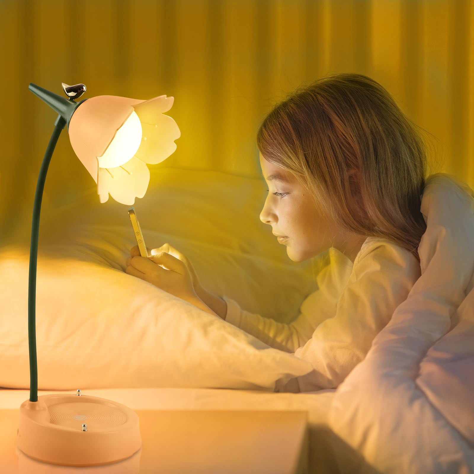 Total süße Schreibtischlampe für Kinder! Mit niedlichen Vögeln und Blumen - sieht aus wie aus dem Märchenwald. Dimmbar mit 3 Farbtemperaturen (weiß, warm, gemischt). Touch-Bedienung macht Spaß. Der flexible Schwanenhals lässt sich in alle Richtungen biegen. Praktischer Stifthalter unten - Ordnung halten wird easy. 1200mAh Akku - kann überall hin mitgenommen werden. Rutschfeste Basis und augenschonendes, flackerfreies Licht. Perfekt für Hausaufgaben, Lesen oder als Nachtlicht. Ein Traum für jedes Kinderzimmer!