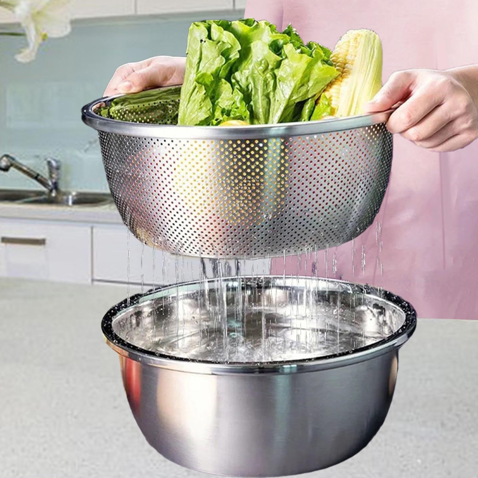 Mann, dieses Sieb-Set von DimyFew ist ja mal richtig praktisch in der Küche! 🔹 Aus 304 Edelstahl - lebensmittelecht, rostfrei und langlebig. 🔹 Sieb 25,5x11,5 cm - mit superfeinen Löchern, nichts fällt durch. 🔹 Passende Schüssel 26x13 cm - fängt Tropfwasser auf. 🔹 Perfekt für Nudeln, Reis, Gemüse, Obst - vielseitig einsetzbar. 🔹 Glatte Kanten - keine Verletzungsgefahr, angenehm in der Hand. 🔹 Einfach zu reinigen - spülmaschinengeeignet. Egal ob du Pasta abgießt, Gemüse wäschst oder Reis spülst - mit diesem Set geht alles easy. Einfach Sieb in Schüssel setzen, abgießen - keine Sauerei auf der Arbeitsplatte! Super für Haushalt, Restaurant oder Hotelküche.