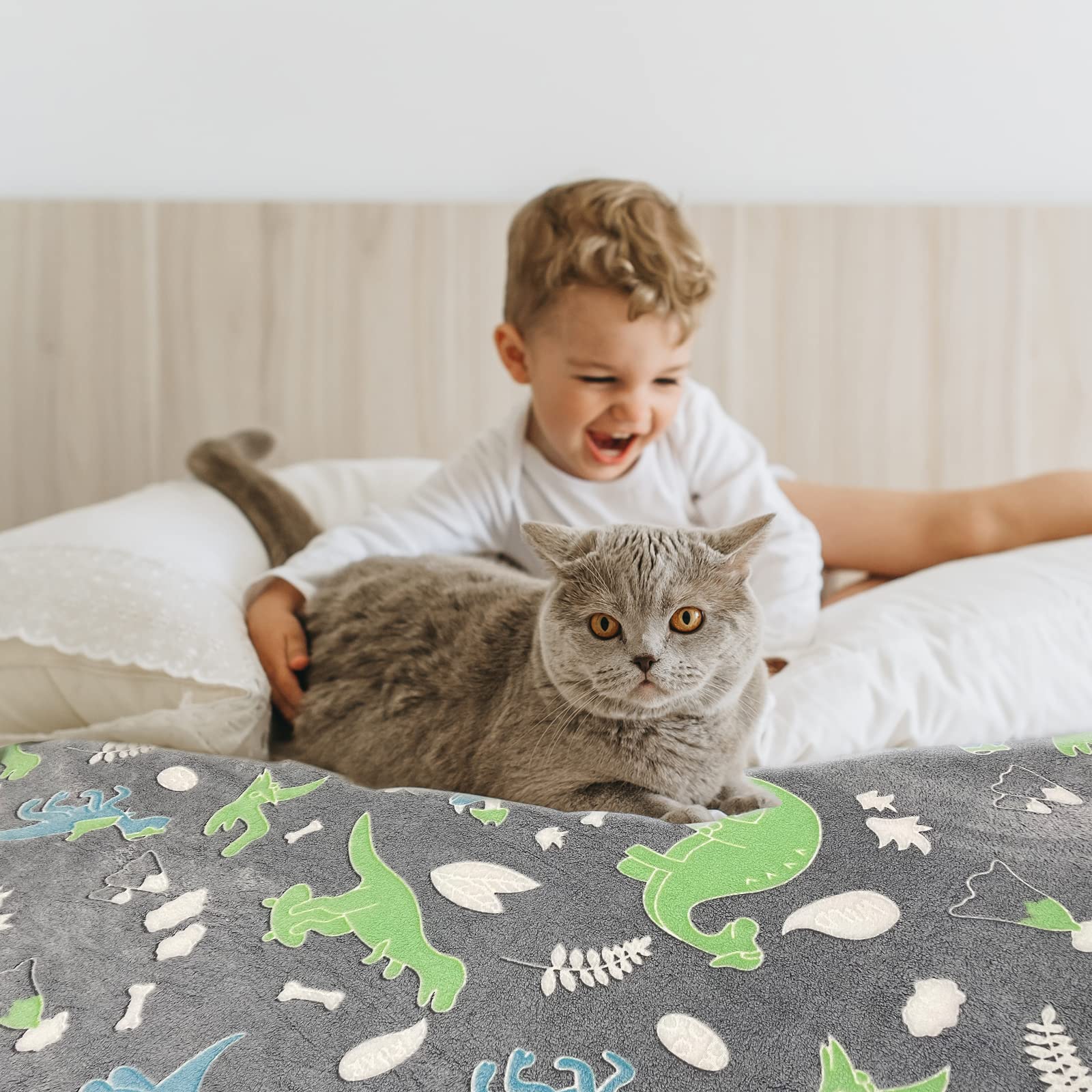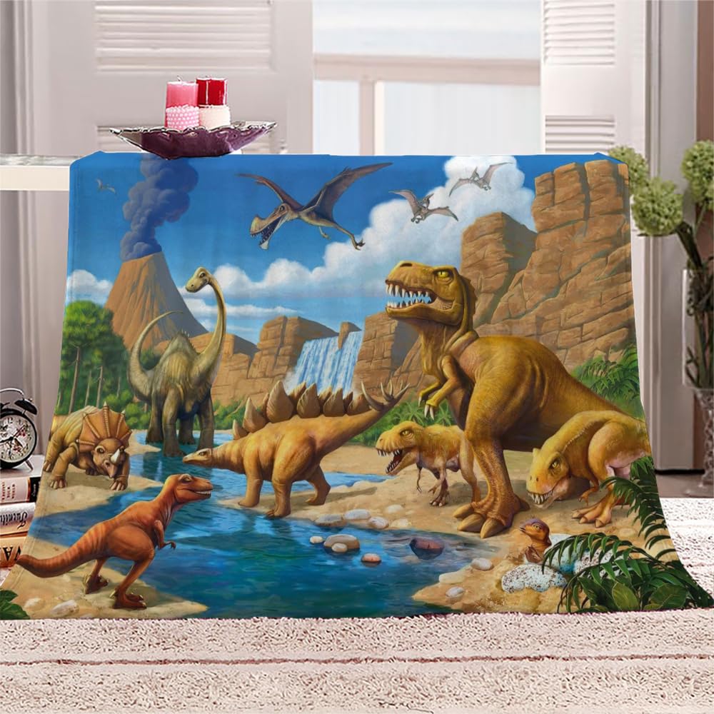 • Kuscheldecke Mit Dinosaurier Print - Flauschige Kinderdecke 100x130cm Für Jungen & Mädchen