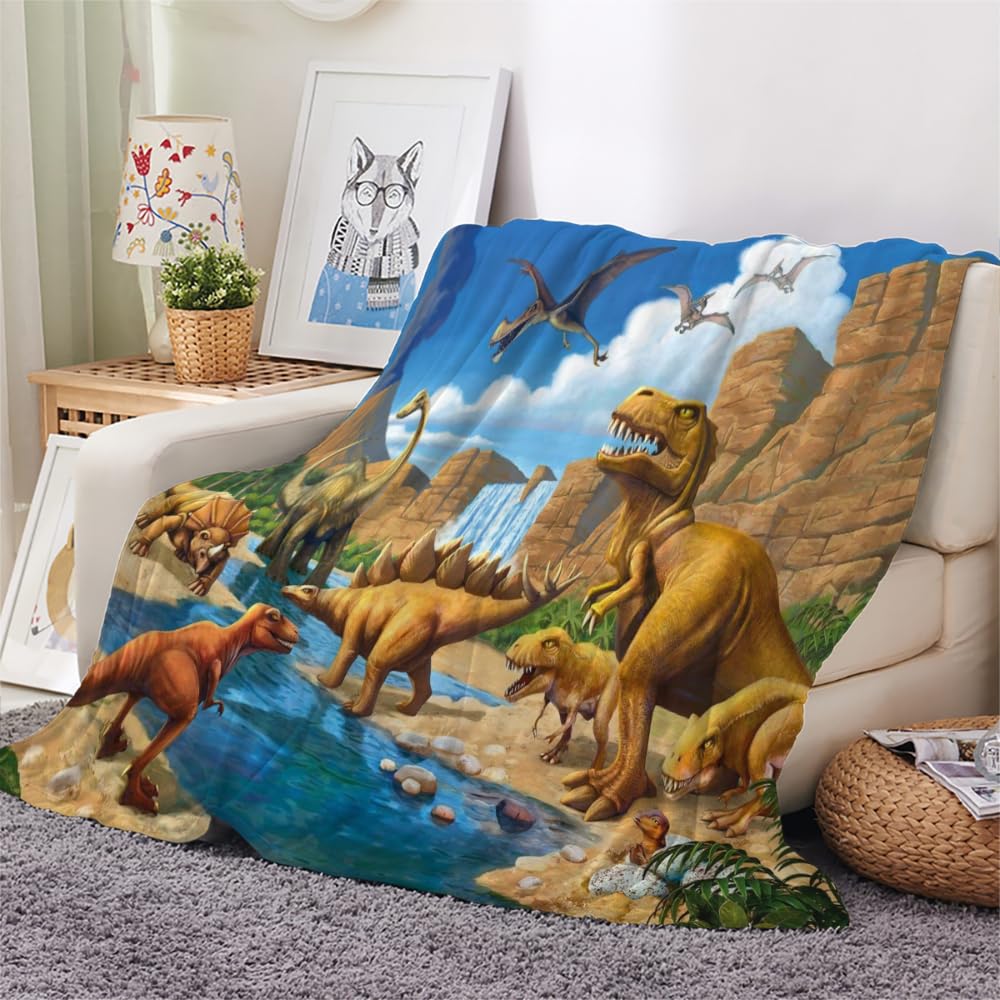 Kuscheldecke Mit Dinosaurier Print - Flauschige Kinderdecke 100x130cm Für Jungen & Mädchen