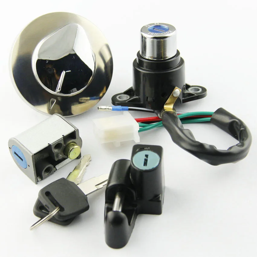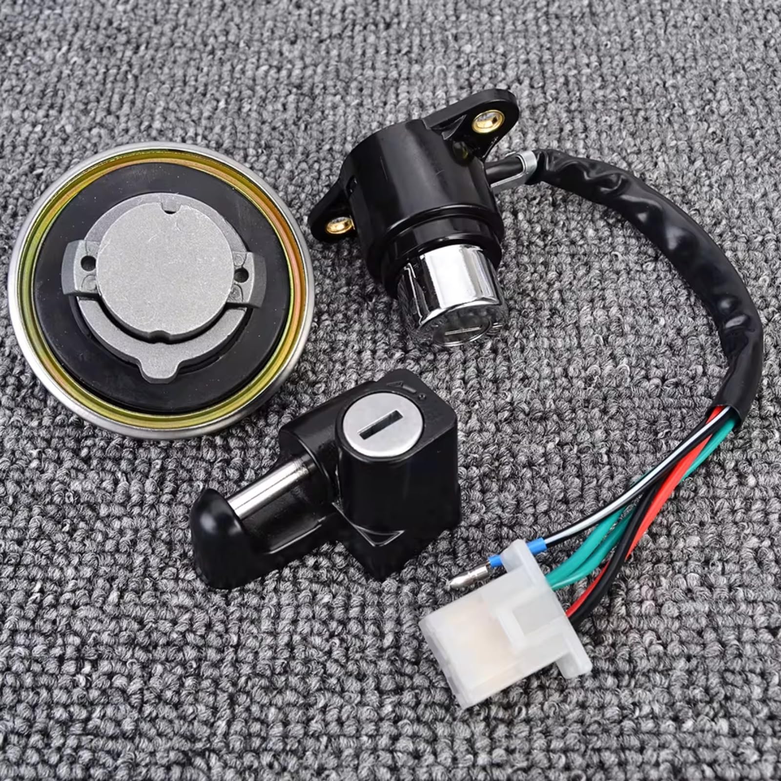 Bring deine CMX250 Rebel wieder auf Vordermann mit diesem kompletten Schlossset! Enthalten sind Tankdeckel, Zündschloss (5 Drähte), Helmschloss und Sitzschloss - alles mit 2 Schlüsseln. Aus hochwertigem Metall gefertigt, rostgeschützt und mit präziser CNC-Bearbeitung.