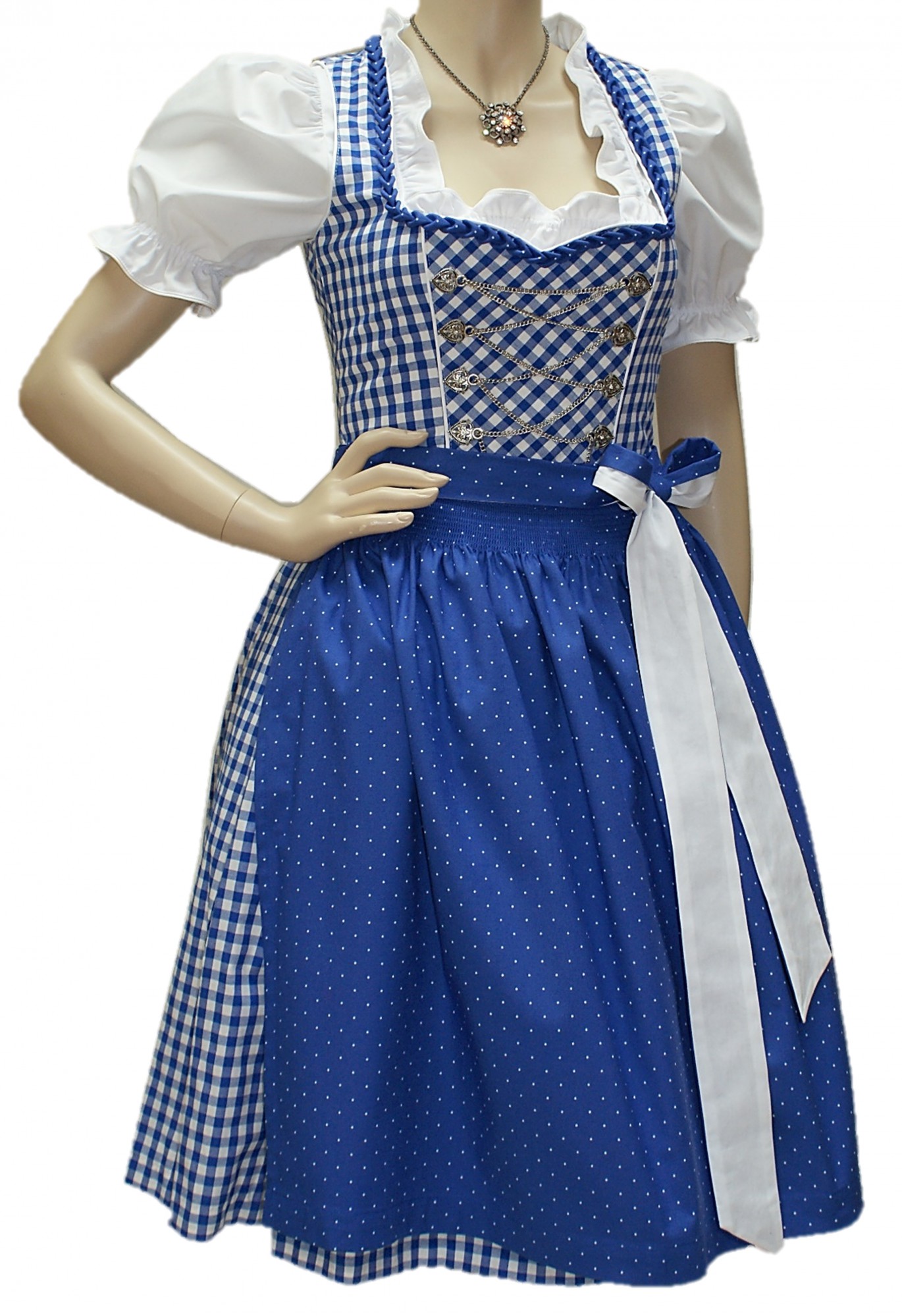 Dirndl Set 3-teilig Blau-weiß Kariert - Trachtenkleid Mit Bluse Und Schürze