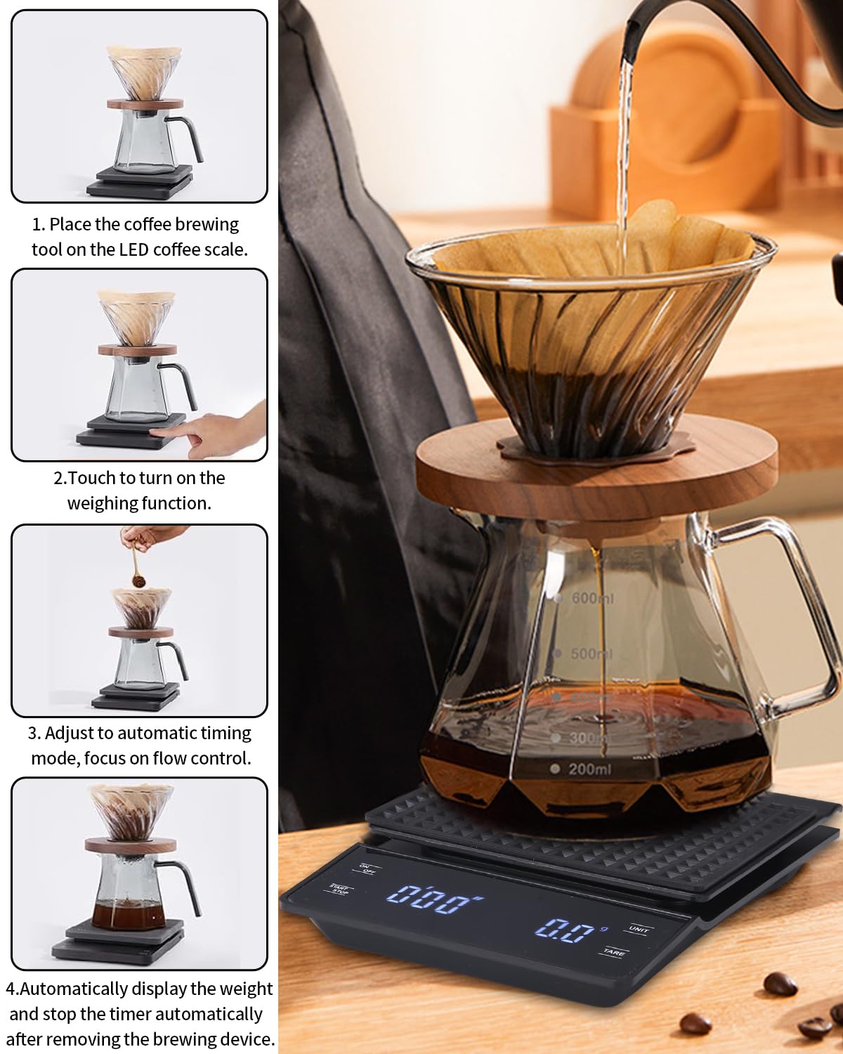 • 3T6B Digitale Kaffeewaage - LED-Display, 0,1g Genauigkeit - Wiederaufladbar Für Espresso & Filterkaffee