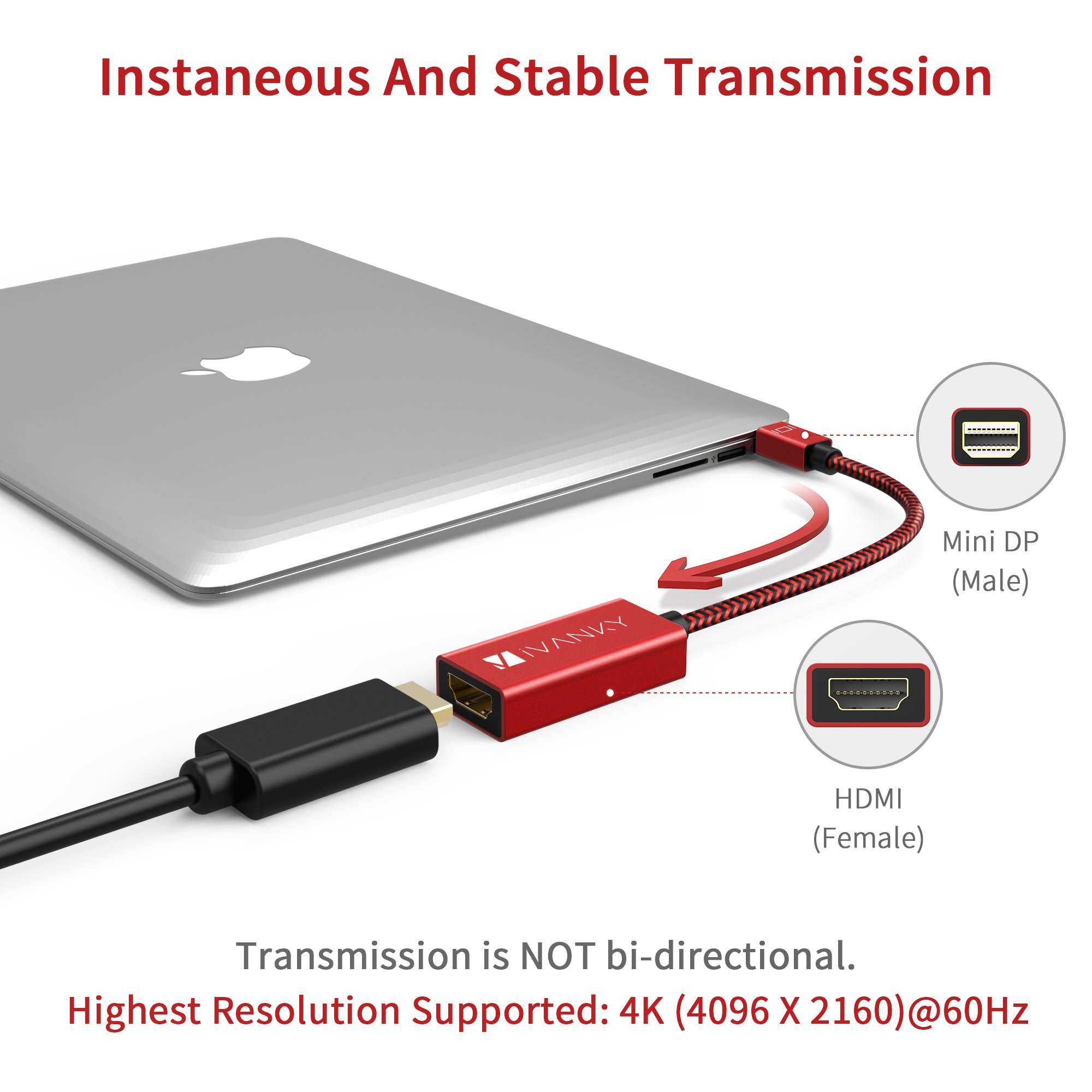 Hol dir kristallklare 4K Bildqualität auf deinem Monitor oder TV! Dieser Mini DisplayPort auf HDMI Adapter unterstützt Ultra HD 4K bei 30Hz (4096x2160) und Full HD 1080p bei 120Hz - perfekt für Filme, Gaming oder Präsentationen. Mit den vergoldeten Steckern für optimale Signalübertragung und dem robusten Aluminiumgehäuse ist dies ein Adapter, der lange hält. Das nylonumflochtene Kabel ist besonders widerstandsfähig gegen Verdrillen und Haustierbisse. Wichtig: Nur unidirektional von Mini-DP auf HDMI, nicht umgekehrt! Kompatibel mit Apple MacBook Air (vor 2017), MacBook Pro (vor 2015), iMac (2009-2015), Microsoft Surface Pro/Pro 2/3/4, Surface 3 sowie Monitoren von HP, Dell, LG, ASUS und Projektoren. Nicht kompatibel mit Thunderbolt 3/4/USB-C! Der schlanke Stecker blockiert keine benachbarten Anschlüsse und lässt sich leicht ein- und ausstecken. Audio Pass-Through für 7.1, 5.1 oder 2-Kanal Sound inklusive. Dein Upgrade für bessere Bildqualität!