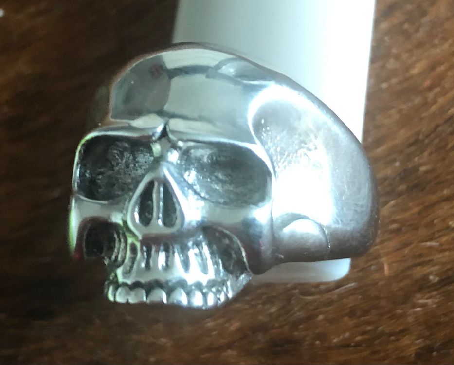 Alter, dieser Totenkopf-Ring ist ja mal richtig krass! Aus hochwertigem Edelstahl gefertigt ist er hypoallergen und lässt deine Finger nicht grün werden. Der lila Edelstein in der Mitte gibt dem ganzen noch den extra Kick.\n\nIn 6 verschiedenen Größen erhältlich (57, 60, 62, 64, 67, 70) - da findest du garantiert deine Passform. Einfach mit einem Maßband messen und die richtige Größe bestellen. Der Ring ist super genau verarbeitet, jedes Detail sitzt perfekt.\n\nOb als Statement-Ring für dich selbst oder als Partnerring für dich und deinen Kumpel - damit zeigst du Stil! Der zeitlose Skull-Look passt zu fast jedem Outfit und ist einfach immer cool.\n\nHochwertige Verarbeitung die lange hält. Kein Rost, keine Oxidation - einfach nur ein mega Ring der was her macht. Perfekt für alle die es etwas ausgefallener mögen!