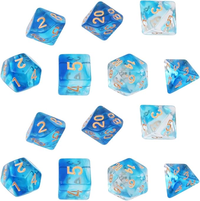 Perfekt für deine nächste RPG-Session! Dieses umfangreiche Würfel-Set von DollaTek enthält 14 Stück - das sind zwei komplette 7er-Sets. Enthalten sind alle wichtigen Würfel für Dungeons & Dragons und andere Rollenspiele: D20, D12, D10, D8, D6 und D4. Die transparenten Würfel in Lila mit progressiver Farbgebung sehen nicht nur cool aus, sondern sind auch praktisch. Die großen, gut lesbaren Zahlen in Gold und Weiß machen das Spielen angenehm. Aus hochwertigem PMMA Acryl gefertigt - leicht, langlebig und mit perfekten Kanten. Inklusive schwarzer Aufbewahrungstasche für deine Würfel. Ideal für DND, Pathfinder, Shadowrun, MTG und andere Tabletop-Spiele. Mit diesem Set bist du bestens ausgestattet für epische Abenteuer in fantastischen Welten!