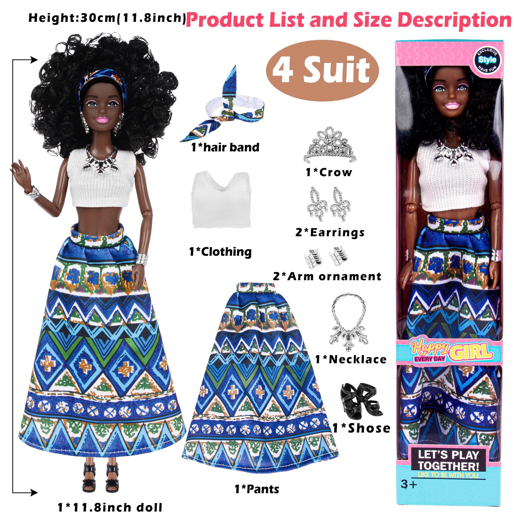 So viel Vielfalt und Freude in einem Set! 6 entzückende afrikanische Puppen, je 10cm (4 Zoll) groß, jede in einer anderen Farbe: Lila, Rot, Schwarz, Hellblau, Hellgrün und Hellrosa.