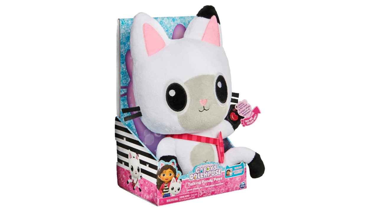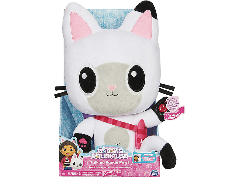 Der süßeste Begleiter für kleine Gabby's Dollhouse-Fans! Diese 33cm große Pandy Paws Plüsch-Katze bringt die Magie der beliebten Netflix-Serie nach Hause. Drücke die Pfote und Pandy Paws erwacht zum Leben: mit 2 englischen Liedern, 10 Geräuschen und coolen Lichteffekten! Superweich und kuschelig weich - perfekt zum Knuddeln und Mitnehmen. Die liebevollen Details wie die spitzen Ohren, der süße Schwanz und die Pandy-Tasche machen diese Katze zum absoluten Liebling. Einfach die Pfote gedrückt halten für Musik und Lichter, oder kurz drücken für Geräusche. Das ultimative Geschenk für Kinder ab 3 Jahren, die Gabby's Abenteuer lieben. Spielspaß und Kuschelfaktor in einem!