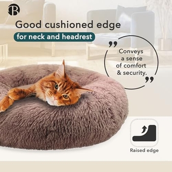 Träum süß auf diesem kuscheligen Donut-Bett! Die erhöhten Rändern geben deinem Hund Sicherheit und Nackenstütze. Aus weichem Kunstfell und Cord-Fleece für ultimativen Komfort. Rutschfeste Unterseite hält sicher auf jedem Boden. Abnehmbarer Bezug maschinenwaschbar - praktisch bei Schmutz. Mit doppelter PP-Baumwollfüllung für optimale Unterstützung. In Größe L (80cm) für kleine bis mittlere Hunde. Schafft ein gemütliches Nest zum Einkuscheln. Perfekt für Wohnung oder Haus. Dein Hund wird dieses kuschelige Reich lieben!