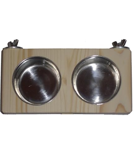 Hey du Vogelbesitzer! Deine gefiederten Freunde verdienen doch nur das Beste, oder? Dieser Futternapf aus Edelstahl ist nicht nur robust, sondern auch super hygienisch! \\n\\nDas coole Doppel-Design bietet Platz für Futter und Wasser gleichzeitig - so müssen deine Vögel nicht zwischen den Mahlzeiten umziehen. Die beiden Näpfe sind aus hochwertigem Edelstahl, der rostfrei ist und sich leicht reinigen lässt. \\n\\nTechnische Details: \\n• Größe: 16x13 cm - perfekt für die meisten Käfige \\n• Holzplatte: 8,5x16 cm - natürlicher Look \\n• Mit Befestigungsschrauben - sitzt bombenfest \\n• Einfach abnehmbar zur Reinigung \\n\\nEgal ob du Papageien, Aras, Wellensittiche oder Nymphensittiche hast - dieser Napf ist für die meisten Vogelarten geeignet. Die Edelstahl-Oberfläche ist glatt und lässt sich super sauber halten, was wichtig für die Gesundheit deiner Vögel ist. \\n\\nDie Montage ist denkbar einfach: Schrauben durch die vorgebohrten Löcher, Eisenplatte dahinter, festziehen - fertig! Die Näpfe kannst du dann einfach rausnehmen zum Füllen und Reinigen. \\n\\nAlso, wenn du deinen Vögeln eine hochwertige und praktische Futterlösung bieten willst, die auch noch gut aussieht, ist dieser Doppelnapf genau das Richtige. Deine Vögel werden's dir danken!