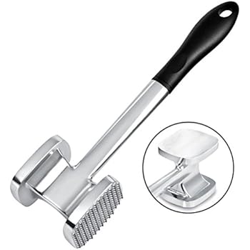Professionelles Fleischklopfen war noch nie so einfach! Dieser doppelseitige Fleischklopfer aus Zinklegierung ist ein echter Küchen-Held.