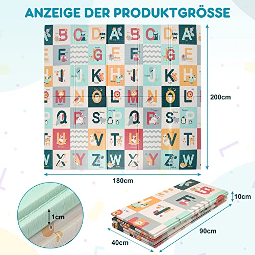 Die perfekte Spielwiese für dein Baby! Diese extra große Matte (196x176cm) bietet jede Menge Platz zum Krabbeln, Spielen und Entdecken. Das doppelseitige Design mit süßen Tiermotiven weckt die Neugier deines Kindes. Aus sicherm XPE-Material ohne Schadstoffe - die 1,5cm dicke Polsterung schützt vor Stürzen. Komplett wasserdicht und leicht zu reinigen - einfach abwischen und fertig. Die rutschfeste Unterseite hält sicher auf jedem Boden. Und wenn Besuch kommt oder du Platz brauchst: einfach zusammenfalten und verstauen. Schafft eine sichere, gemütliche Spielecke im Wohnzimmer oder Kinderzimmer. Dein Baby kann sich austoben, während du beruhigt daneben sitzt. Einfach ausrollen und Spielspaß genießen!