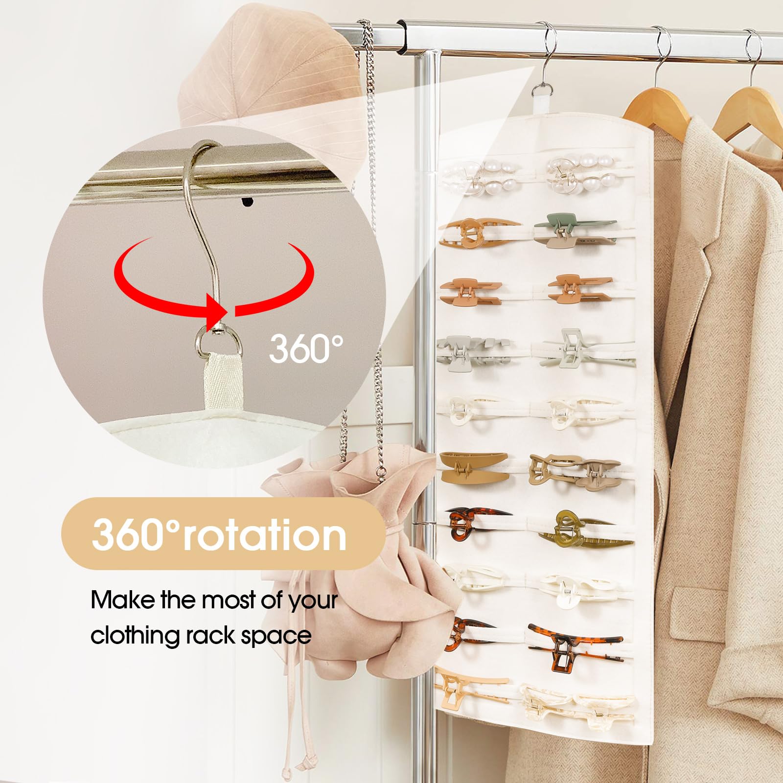 Endlich Ordnung im Chaos der Haarspangen! Dieser doppelseitige Organizer ist der Retter für alle, die viele Klammern und Schmuck haben. Mit stattlichen 34,3x91,4cm bietet er jede Menge Platz für deine gesamte Sammlung. Ausgestattet mit 40 Halterungen (20 auf jeder Seite) - perfekt für kleine, mittlere und große Klammern oder anderen Schmuck! Das geniale 360-Grad-drehbare Haken-Design ermöglicht dir, den Organizer in jede gewünschte Richtung zu drehen. Einfach aufhängen an Schrank, Tür oder Wand - keine Installation nötig! Aus weichem Filzmaterial gefertigt, jeder Halter etwa 15,2cm lang - die ideale Größe für Haarspangen. Rostbeständiger Metallhaken für lange Haltbarkeit - selbst Erwachsene können ihn nicht zerreißen! Vielseitig verwendbar - nicht nur für Haarspangen, sondern auch für Stirnbänder, Seidenschals, Haarschleifen oder Brillen. Spart Platz und du findest alles sofort! Perfekt als Geschenk für Freundinnen, Familienmitglieder oder alle, die viele Haar-Accessoires haben. Macht das Zimmer gleich viel ordentlicher und bunter!