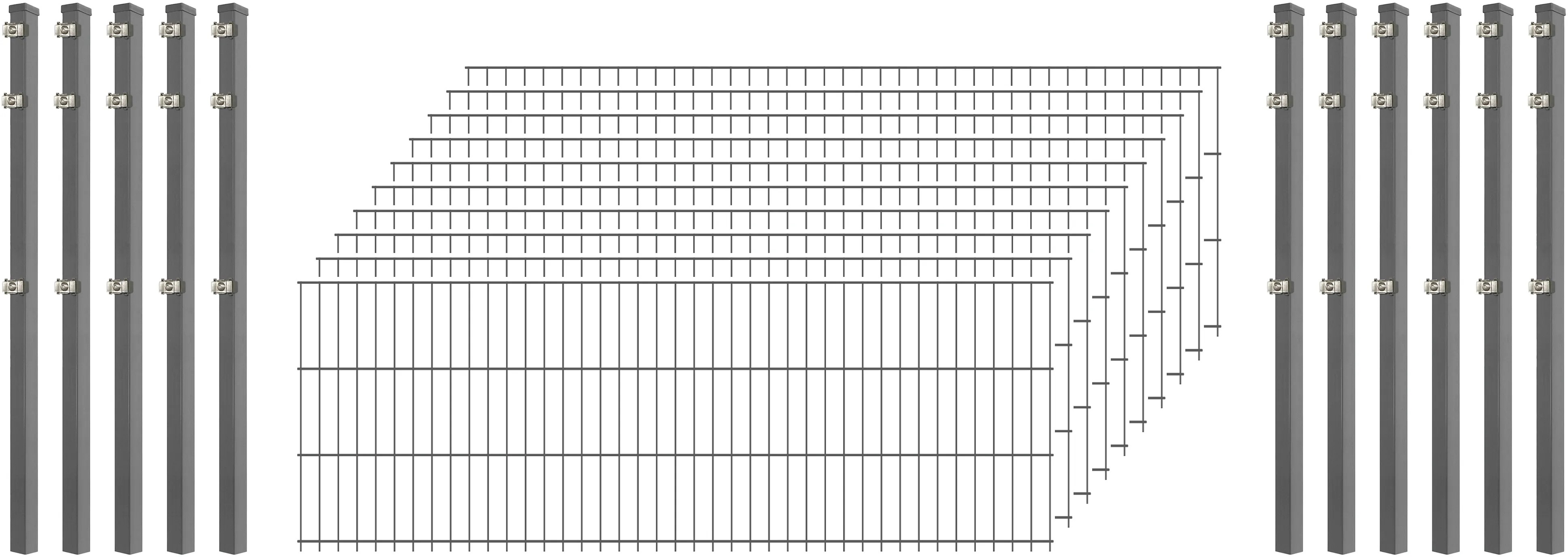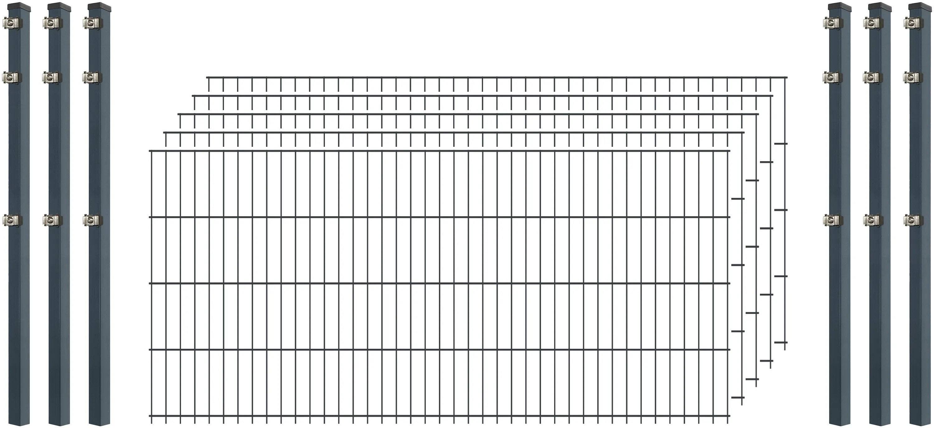 Dein neuer Gartenzaun - stabil, sicher und schnell aufgebaut! Dieses Doppelstabmattenzaun-Set von Arvotec enthält alles für 10 Meter Zaun: Matten, Pfosten und Montagematerial. Die Maschenweite von 200x50mm bietet optimalen Sichtschutz und Sicherheit. Verzinkter Stahl mit Pulverbeschichtung in Anthrazit macht den Zaun absolut wetterfest und langlebig. Die Pfosten sind 40-60cm länger als der Zaun - perfekt zum Einbetonieren. Oder du befestigst sie mit Bodenplatten auf festem Untergrund. Einfacher Aufbau, professionelles Ergebnis! Perfekt für Garten, Vorgarten oder Grundstücksgrenzen. Das Komplett-Set spart Zeit und Geld - alles aus einer Hand. Lieferung per Spedition, also bitte Telefonnummer nicht vergessen. Dein Zaun-Projekt war noch nie so einfach!