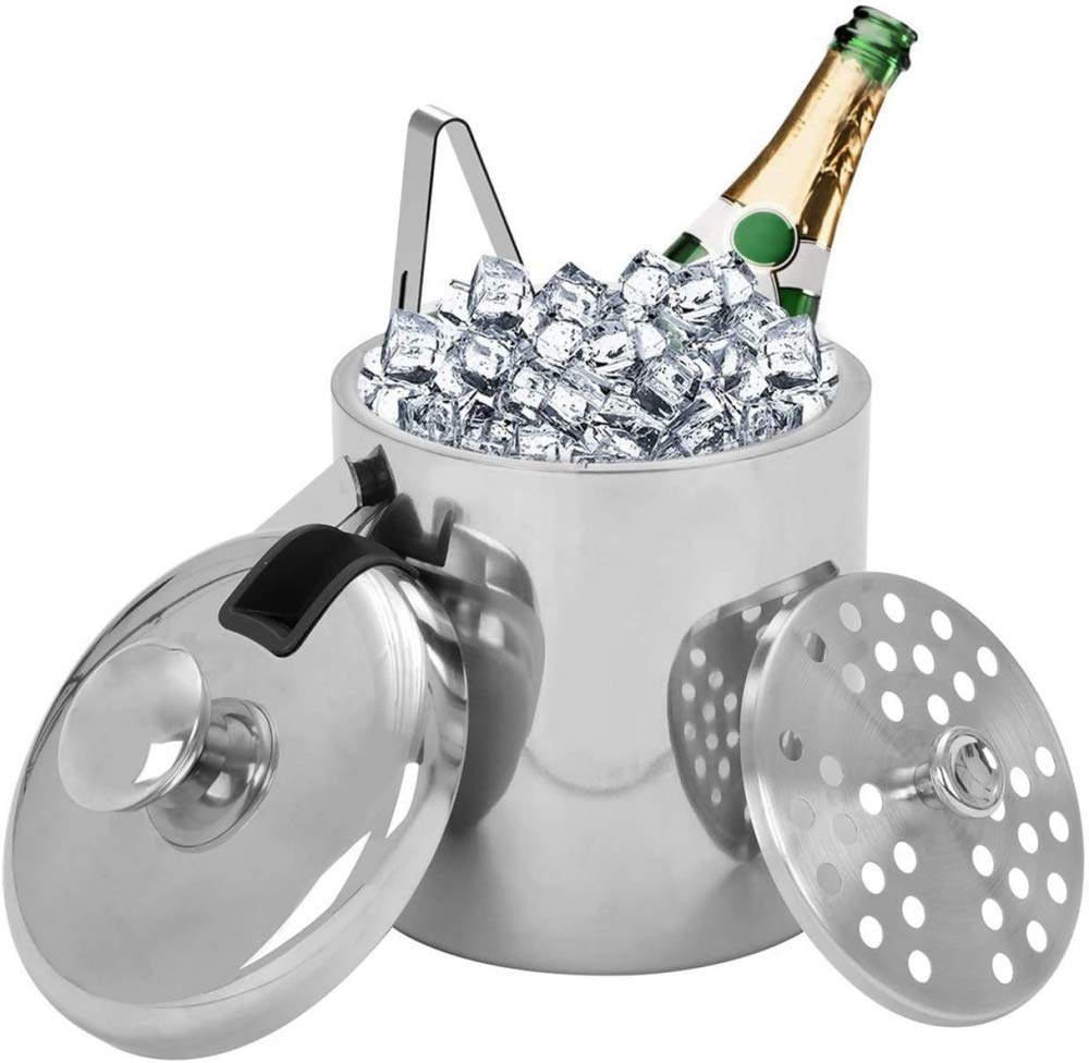 Dieser Edelstahl-Eiskübel ist der absolute Party-Profi! Mit 7 Litern Volumen passt da jede Menge Eis und Getränke rein - genug für die ganze Feier. \\n\\nDank doppelwandiger Isolierung hält das Eis bis zu 24 Stunden! Viel länger als normale Eimer. Aus hochwertigem 18/8 Edelstahl, robust und spülmaschinengeeignet. \\n\\nIm Lieferumfang:\\n• 7L Eiskübel mit Deckel\\n• Praktische Eis-Zange\\n• Löffel für die Eisentnahme\\n• Integrierter Flaschenöffner\\n\\nPerfekt für:\\n• Gartenpartys und Grillfeste\\n• Picknicks und Strandausflüge\\n• Familienfeiern\\n• Kneipen und Bars\\n\\nDer verdickte Griff liegt super in der Hand und der Deckel hält die Kälte drin. Einfach befüllen und den ganzen Tag kalte Getränke genießen - so macht Feiern Spaß!