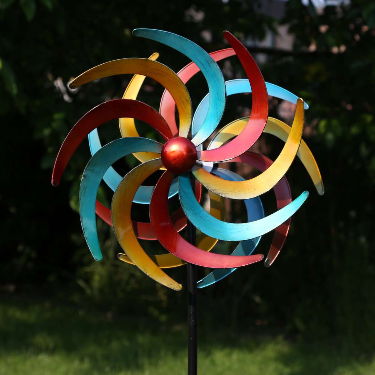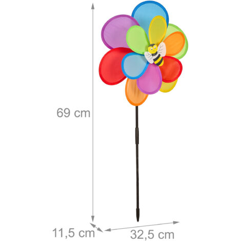 Bring Farbe und Bewegung in deinen Garten mit diesem wunderschönen Doppelwindrad von Relaxdays! Mit stolzen 119cm Höhe ist dieses Windrad ein echter Hingucker in jedem Beet oder auch in großen Blumentöpfen. Das Besondere: Zwei parallele Windräder in bunten Farben erzeugen ein faszinierendes Farbenspiel, sobald der Wind sie in Bewegung setzt. Kinder und Erwachsene werden gleichermaßen begeistert sein, wenn sich die Räder im Wind drehen. Der stabile Erdspieß aus Eisen sorgt für sicheren Halt, auch bei stärkerem Wind. Einfach in die Erde stecken - schon ist die Deko fertig montiert! Die Räder haben einen Durchmesser von 33cm und der gesamte Stab ist 102cm lang. Mit einem Gewicht von 840g steht das Windrad stabil, ohne zu schwer zu sein. Perfect für Garten, Terrasse oder Balkon - diese fröhliche Windmühle bringt gute Laune und sorgt für ein lebendiges Gartenerlebnis. Eine wunderbare Möglichkeit, deinem Outdoor-Bereich eine persönliche Note zu verleihen und die Natur auf charmante Weise zu integrieren.