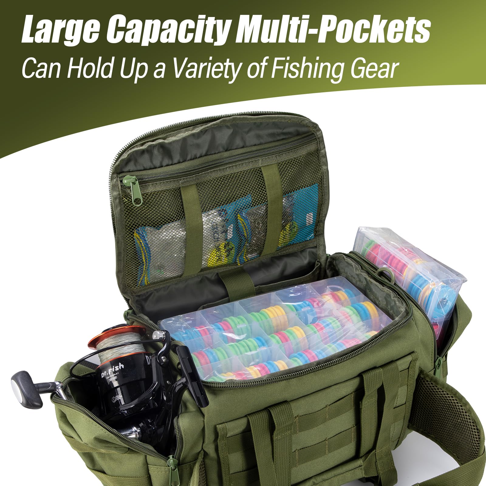 Alles griffbereit für dein nächstes Angelabenteuer! Diese Dr.Fish Tasche in praktischer Wüstentarnung hat für alles ein Fach: Das große Hauptfach nimmt bis zu 4x 3600 Modelle auf, die Seitentaschen bieten Platz für Kleinteile, und die Reißverschlussfächer oben halten deine wichtigsten Utensilien sicher verwahrt. Aus robustem 900D Oxford-Gewebe und komplett wasserabweisend - da macht auch ein Regenschauer nichts aus. Die verstellbaren, gepolsterten Schultergurte machen selbst lange Tragezeiten angenehm. Ob Angeln, Wandern, Jagen oder Camping - diese Tasche ist dein zuverlässiger Begleiter für alle Outdoor-Aktivitäten!