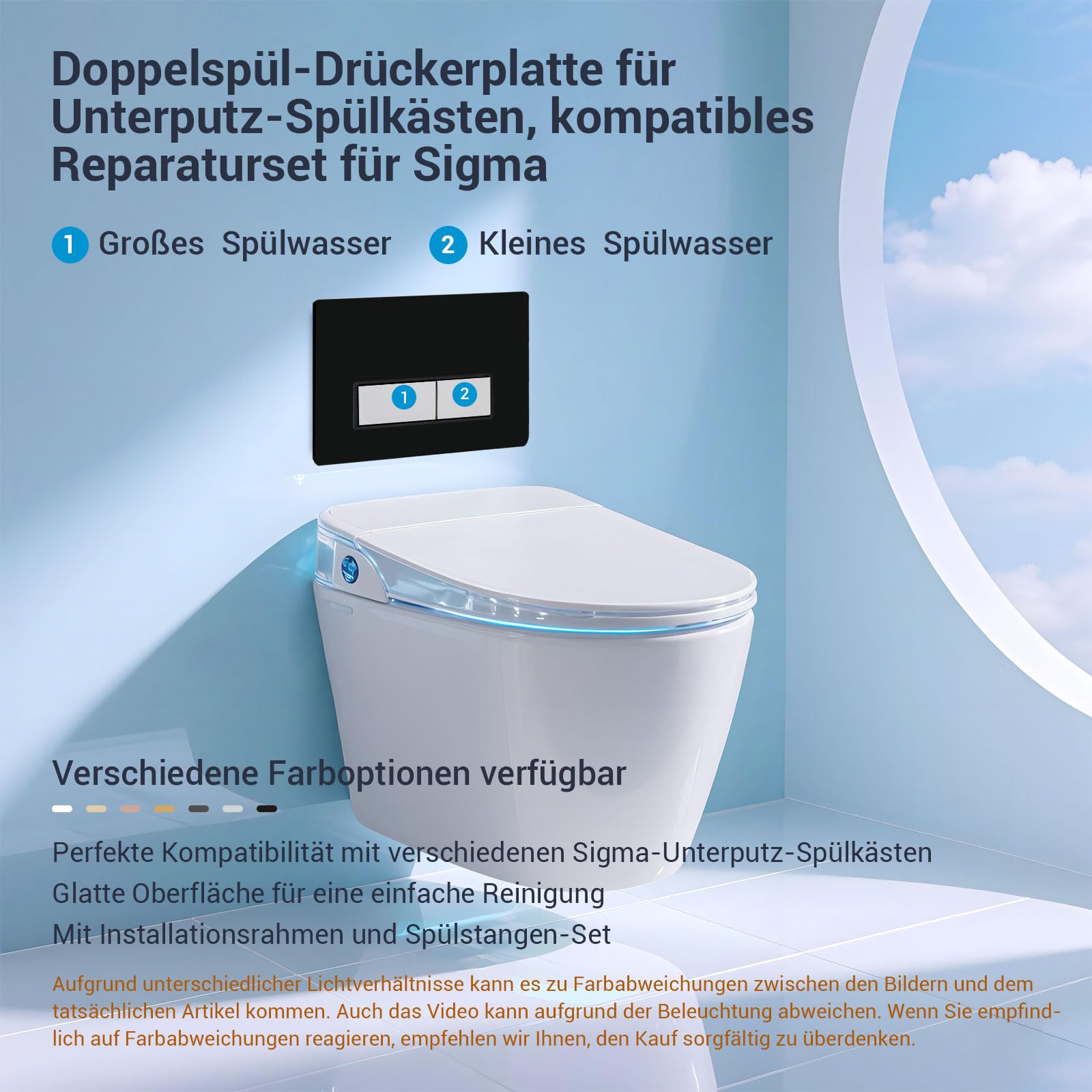 Gib deinem Badezimmer ein frisches Update! Diese hochwertige WC-Drückerplatte von Mendorio passt perfekt zu Geberit Sigma 01/20/30 sowie UP300 und UP320 Serien. Mit den Maßen 250x170mm ersetzt sie mühelos deine alte, abgenutzte Platte. Aus robustem Acryl-Material gefertigt, bleibt sie auch in feuchter Umgebung lange schön und ist leicht zu reinigen. Das Doppelspülsystem ermöglicht wahlweise eine Wasser sparende Teilspülung oder eine kräftige Vollspülung - gut für die Umwelt und deinen Geldbeutel! Die Installation ist denkbar einfach und kann ohne spezielles Werkzeug durchgeführt werden. Im Lieferumfang ist alles enthalten, was du brauchst: Die Platte, Montagehalterung, Spülstange und eine verständliche Anleitung. Ob deine alte Platte kaputt ist oder du einfach mal was Neues möchtest - mit dieser modernen Drückerplatte macht das Spülen wieder Spaß und dein Badezimmer sieht gleich viel gepflegter aus.