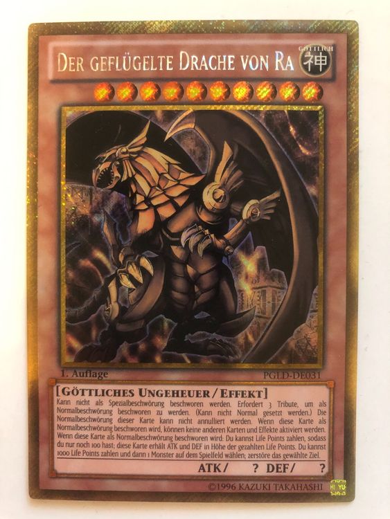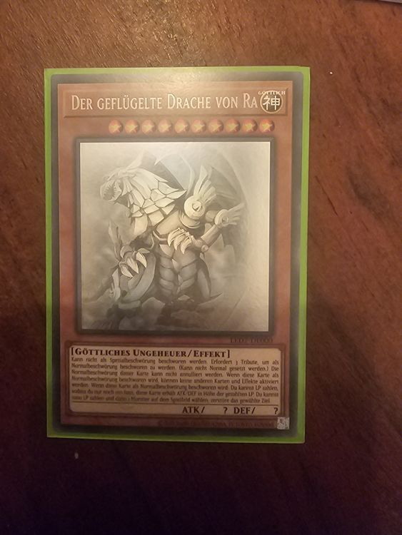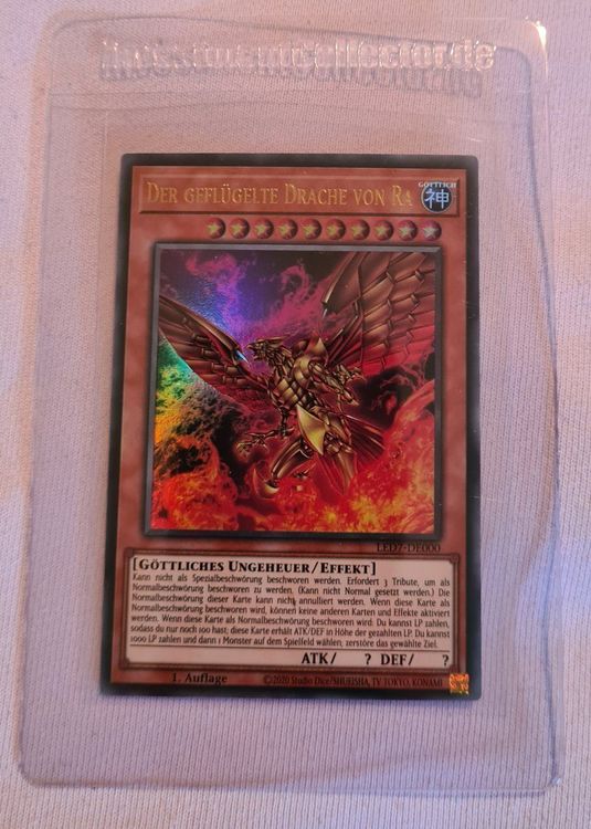 Für echte Yu-Gi-Oh! Fans und Sammler: Der geflügelte Drache von Ra in Ultra Rare - eine der mächtigsten Karten überhaupt! Aus der Legendary Decks II Serie, auf Deutsch. Der Kartenzustand ist Near Mint oder besser - perfekt für Sammler. Als Effektmonster benötigt es 3 Tribute für die Normalbeschwörung und hat spezielle Fähigkeiten wie LP-Zahlung für ATK-Boost und Monsterzerstörung. Das Besondere: Inklusive exklusivem RC-Fieldcenter für Turniere - damit hast du dein Spielfeld immer perfekt organisiert. Offizielles Konami-Lizenzprodukt in professioneller, knicksicherer Verpackung. Seit 2018 im Sammelkarten-Handel - wir wissen, was Sammler wollen! Eine echte Rarität, die in keiner Sammlung fehlen sollte. Ob fürs Deck oder die Vitrine - diese Karte macht immer was her. Hol dir ein Stück Yu-Gi-Oh! Geschichte!