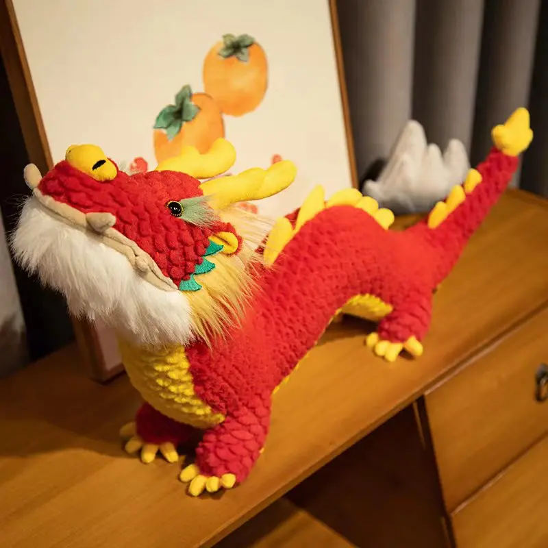 Wow, dieses Drachen-Plüschtier ist ja mal total niedlich! Perfekt fürs Jahr des Drachen 2024! Das orientalische Design ist einfach hammer - mit vollständigen 3D-Gesichtsausdrücken, Hörnern und nem süßen Schwanz!