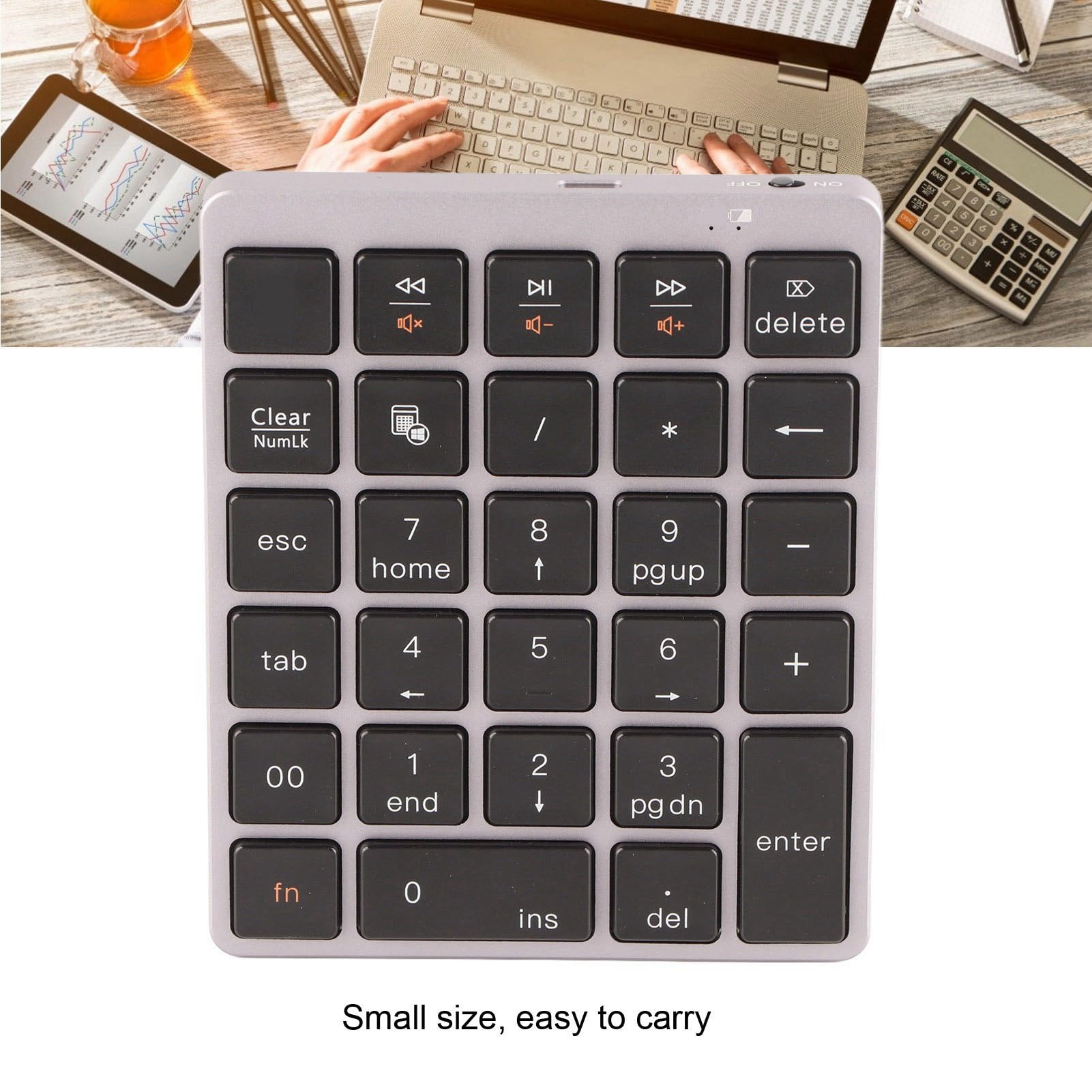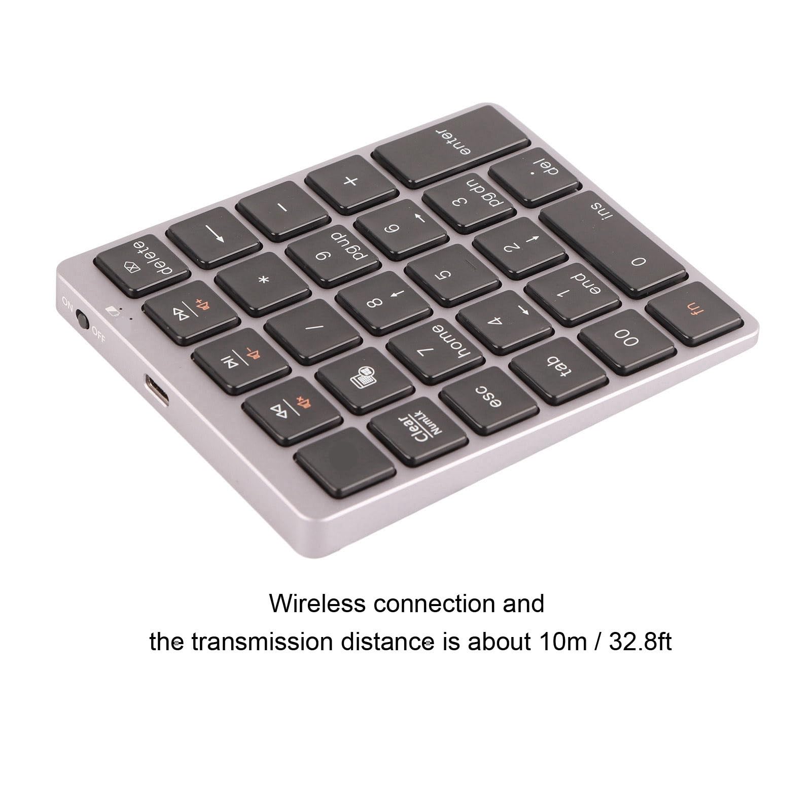Endlich ein Nummernpad für unterwegs! Diese drahtlose Bluetooth-Tastatur mit 28 Tasten ist perfekt für alle, die viel mit Zahlen arbeiten. Ob Buchhalter, Controller oder Student - damit geht die Arbeit mit Excel & Co. viel schneller. Einfach per Bluetooth 3.0 mit deinem Windows PC, Laptop, iOS oder Android Gerät verbinden und los geht's! Die Reichweite beträgt ca. 10 Meter - du kannst also auch mal vom Sofa aus arbeiten. Das 15° geneigte Design ist super ergonomisch und die leisen Tasten machen kaum Klickgeräusche - ideal fürs Büro oder Homeoffice. Aus Aluminiumlegierung gebaut - robust und langlebig. Mit praktischen Sondertasten wie NumLock, %, Delete, 00, =, Esc und Tab. Aufladbar per USB - keine Batterien wechseln nötig. Kompakt und leicht - passt in jede Laptoptasche. Einfacher geht's nicht!