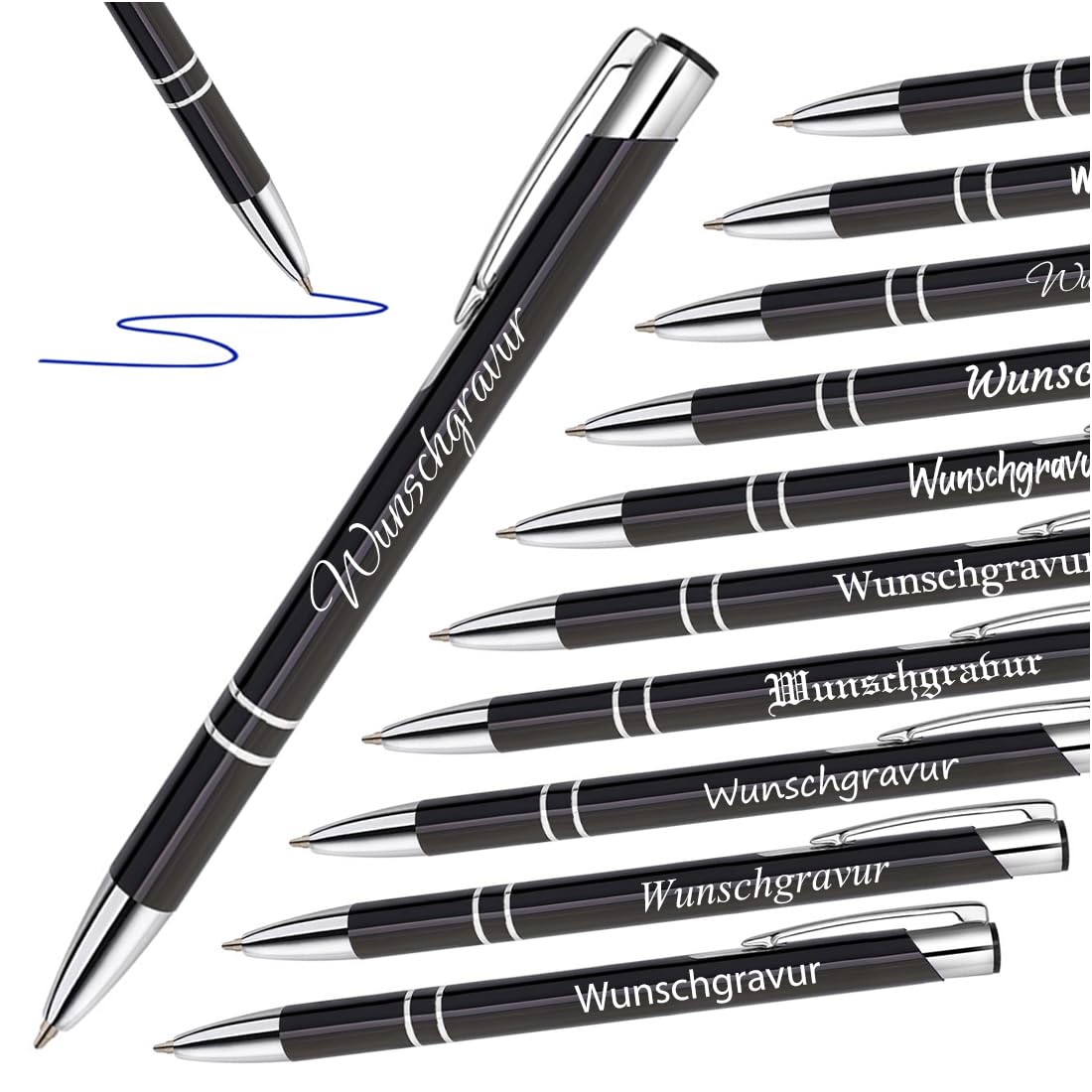 Wow, dieser Kugelschreiber ist was Besonderes! Aus hochwertigem Metall gefertigt, liegt er super in der Hand - dank der gummierten Oberfläche und Spezialbeschichtung. Aber das Beste: Er kann mit deinem Wunschtext personalisiert werden! Moderne Lasertechnik gravier deine persönliche Nachricht dauerhaft in das Metall. Perfekt als Geschenk für Kollegen, Freunde oder einfach für dich selbst. Mit 134mm Länge und 11,5mm Durchmesser ist er angenehm zu handhaben. Die blaue Mine lässt sich ganz einfach wechseln - einfach drehen und schon geht's los. Ob im Büro, in der Schule oder an der Uni - mit diesem Stift macht Schreiben richtig Spaß! Erhältlich in Schwarz, Grau oder Weiß, sodass für jeden Geschmack was dabei ist. Ein hochwertiges Schreibgerät, das nicht nur gut aussieht, sondern auch super funktioniert. Mach dir oder jemand anderem eine Freude mit diesem individuellen Kugelschreiber! Ein Geschenk, das garantiert gut ankommt und täglich verwendet wird. Qualität, die man spürt!