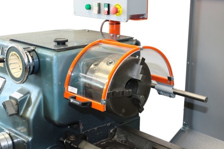 Sicherheit geht vor - besonders an der Drehmaschine! Dieser klappbare Schutzschirm schützt dich zuverlässig vor herumfliegenden Spänen, Kühlmittel und dem rotierenden Drehfutter. Erhältlich in verschiedenen Durchmessern von 300 bis 600 mm, mit einer Breite von 180 mm. Der robuste Stahlrahmen und die schlagfeste Polycarbonat-Scheibe halten auch mechanischen und chemischen Einwirkungen stand. Das Beste: Der Schutzschirm ist klappbar - super praktisch beim Werkstück- oder Futterwechsel. Noch mehr Sicherheit bietet der integrierte Mikroschalter: Wenn du den Schirm öffnest, stoppt die Maschine sofort. So bist du immer auf der sicheren Seite. Die Montage ist einfach - die Halterung hat die Maße 110 x 80 x 40 mm und wird rückseitig angebracht. Perfekt für jede Werkstatt, in der Sicherheit großgeschrieben wird! ✔️ Durchmesser: 300-600 mm ✔️ Breite: 180 mm ✔️ Material: Stahlrahmen + Polycarbonat ✔️ Klappbar für einfachen Zugang ✔️ Mit Sicherheits-Mikroschalter ✔️ Schutz vor Spänen und Kühlmittel ✔️ Einfache Montage ✔️ CE-konform