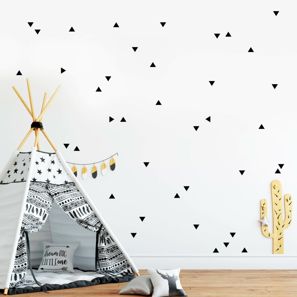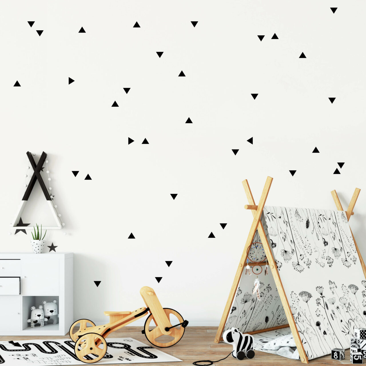Verwandle deine Wände im Handumdrehen! 54 schwarze Dreieck-Aufkleber, je 4x3 cm groß. Made in Germany mit bester Qualität. Selbstklebend und rückstandslos entfernbar - perfekt für Mieter! Auch für Auto, Fahrrad oder Fliesen geeignet. Die konturgeschnittenen Sticker wirken wie aufgemalt. Haltbar bis zu 3 Jahren im Außenbereich. Einfach auf saubere, trockene Flächen aufkleben. Lass deiner Kreativität freien Lauf und gestalte einzigartige Muster. Perfekt für Kinderzimmer, Wohnzimmer oder als individuelle Deko-Idee!