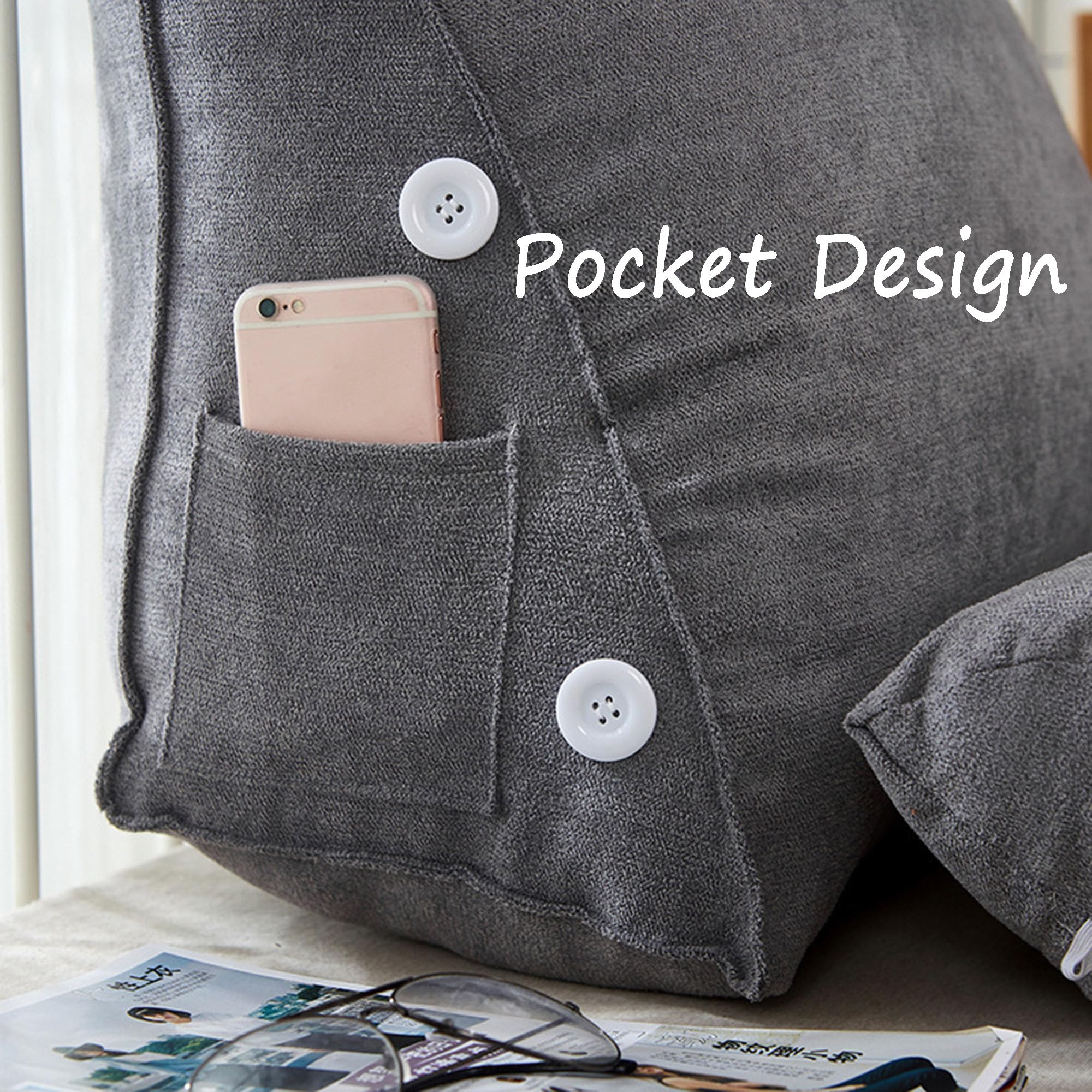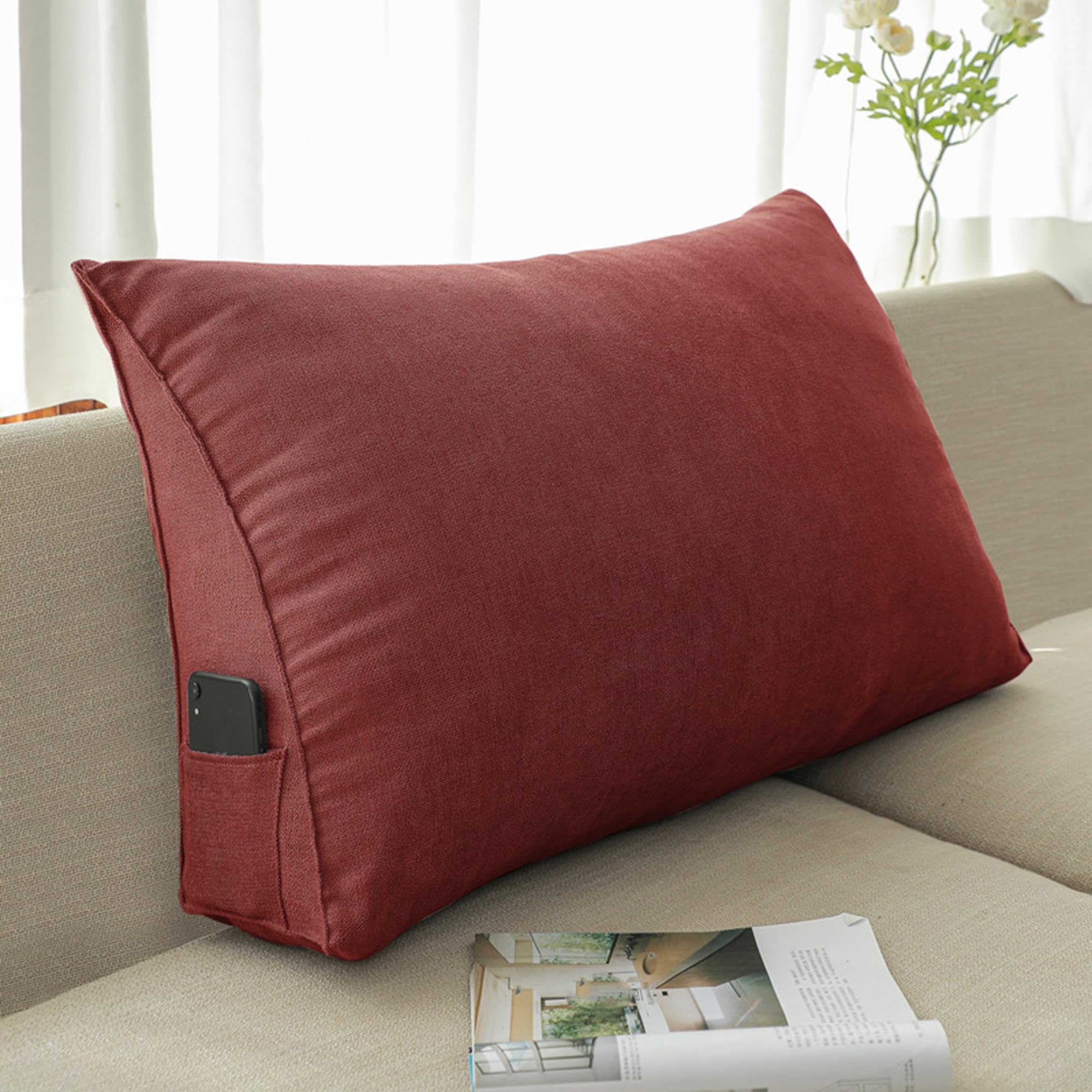 Entlastung für deinen Rücken! Dieses verstellbare Lendenkissen mit dreieckiger Form gibt deinem Rücken und Nacken perfekten Halt. Ob im Bett, auf dem Sofa oder im Auto - einfach dahinterlegen und entspannen. Maße: 45x50x22cm, aus weichem Samtstoff mit PP-Baumwolle-Füllung. Besonderes Highlight: Die verstellbare Nackenrolle kann positioniert werden, wie du es brauchst. Praktische Seitentasche für Handy, Fernbedienung oder Brille. Bezug abnehmbar und waschbar - einfach praktisch. In verschiedenen Farben erhältlich. Bei Rückenschmerzen, zum Lesen oder Fernsehen - dieses Kissen macht einfach jeden Tag gemütlicher!