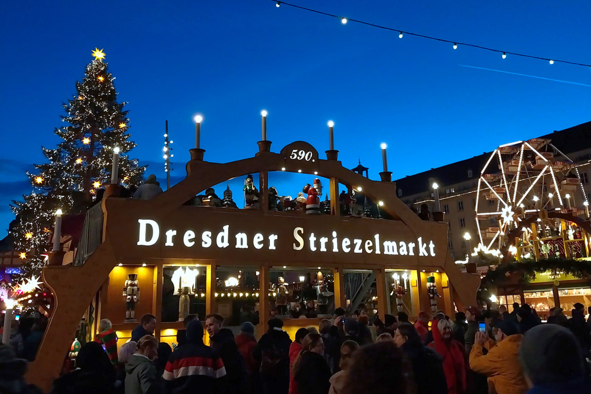 Dresden Schneekugel - Weihnachtsmarkt Souvenir Vom Striezelmarkt | 85mm Sammlerstück