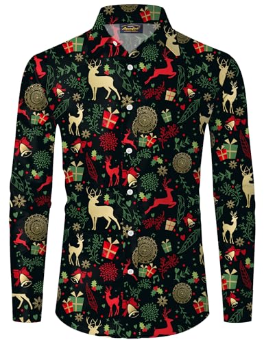 Das perfekte Hemd für die Weihnachtsfeiertage! Mit witzigem 3D-Druck Motiv, das garantiert für Stimmung sorgt. In Slim Fit Passform sitzt es modern und stylisch. Aus weicher Baumwolle gefertigt, super angenehm zu tragen. Mit Stehkragen für den festlichen Look - ideal für Weihnachtsfeiern, Familienfeste oder einfach um in Weihnachtsstimmung zu kommen. Als Geschenk für den Papa, Bruder oder Freund bestens geeignet. Einfach anziehen und der Party-Hit ist garantiert! Mach das Fest noch fröhlicher mit diesem einzigartigen Weihnachtshemd. Verschiedene Größen verfügbar - such dir deine Passende aus und sei der Star auf jeder Weihnachtsfeier!