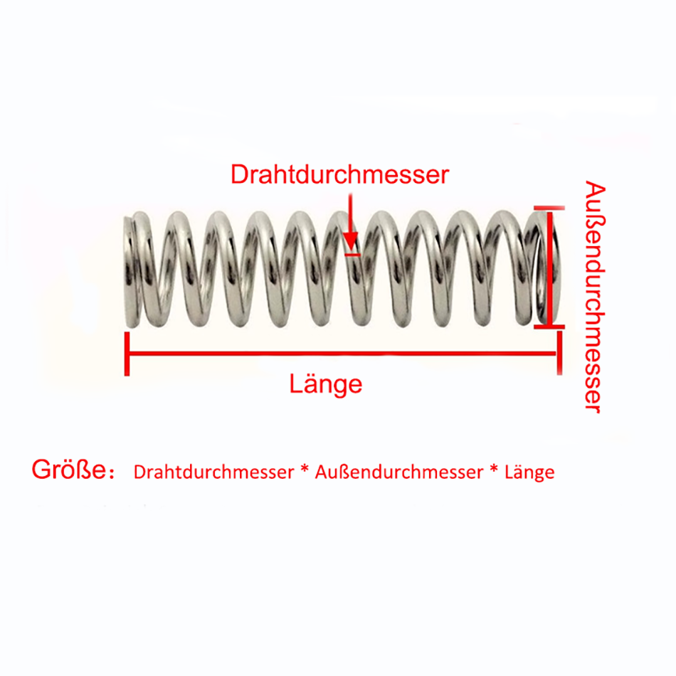 Für alle Bastler und Heimwerker: Diese Edelstahl-Druckfedern sind einfach unverzichtbar! Im 10er Pack, perfekt für verschiedene Projekte. Technische Daten: 1,5mm Drahtdurchmesser, 21mm Außendurchmesser, 15mm freie Länge. Aus Edelstahl 304 - rostfrei, langlebig und super elastisch. Die glatte Oberfläche ohne Grate sieht nicht nur gut aus, sondern ist auch sicher in der Handhabung. Ob für Autos, Industriemaschinen oder Heimwerker-Projekte - diese Federn halten starkem Druck stand und ermüden nicht so schnell. Hohe Härte und Zähigkeit garantieren lange Lebensdauer. Wenn du andere Größen brauchst, frag einfach nach - wir haben noch mehr im Sortiment! Einfach bestellen und dein nächstes Projekt kann starten. Diese Federn sind einfach vielseitig einsetzbar und machen jede Konstruktion stabiler!