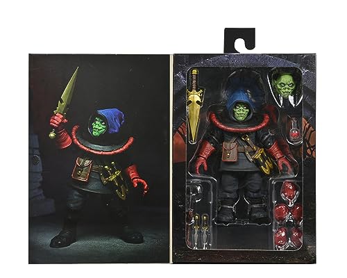 Für echte Dungeons & Dragons Fans ist diese NECA Zarak Actionfigur ein absolutes Muss! Mit 17,8 cm Höhe ist sie perfekt für die Vitrine und bringt den bösen Attentäter detailgetreu zum Leben. Die Figur ist super beweglich und kommt mit jeder Menge Zubehör: Schwert, Dolche für die Gürtelscheiden, Trankflasche, Greifhaken mit Seil und austauschbaren Köpfen und Händen. So kannst du Zarak immer wieder neu in Szene setzen! Die Verpackung hat ein Sichtfenster - perfekt für Sammler, die die Figur im Originalkarton lassen wollen. Ein offizielles Lizenzprodukt, das die klassischen D&D-Figuren modern interpretiert. Egal ob zum Spielen oder Sammeln - diese Figur macht einfach Spaß! Einfach auspacken und in actionreiche Abenteuer schicken!