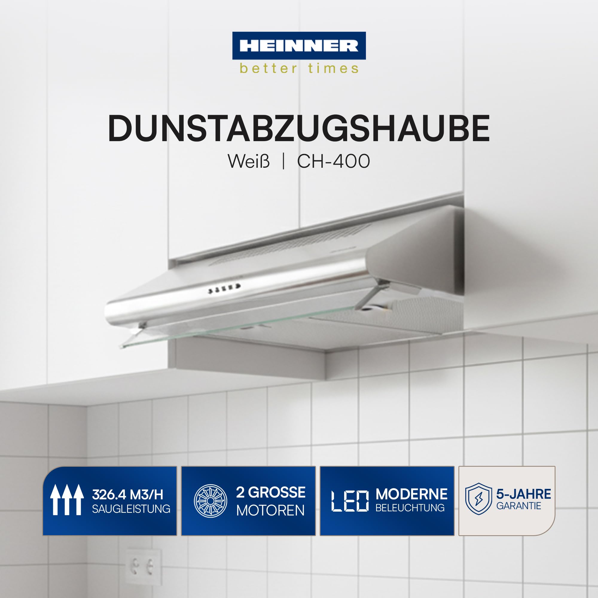 Kochdünste? Kein Problem mit dieser kraftvollen HEINNER Dunstabzugshaube! Mit satten 546m³/h Absaugleistung macht sie kurzen Prozess mit Bratendünsten, Dampf und unangenehmen Gerüchen. Der energieeffiziente 190W Einzelmotor arbeitet leise und zuverlässig. Per Touch-Steuerung wählst du zwischen 3 Leistungsstufen - von sanft bis Power-Absaugung. Die energiesparenden LED-Leuchten (2x1,5W) erhellen deine Kochfläche perfekt. Im dekorativen Design mit 60cm Breite passt sie in fast jede Küche und sieht dabei noch richtig gut aus. Einfache Montage und Bedienung - einfach die gewünschte Stufe antippen und schon arbeitet die Haube für dich. Mit 5 Jahren Garantie bist du auf der sicheren Seite. Ob beim scharfen Anbraten, Kochen oder Backen - deine Küche bleibt immer frisch und geruchsfrei. Endlich eine Dunstabzugshaube, die wirklich hält was sie verspricht!